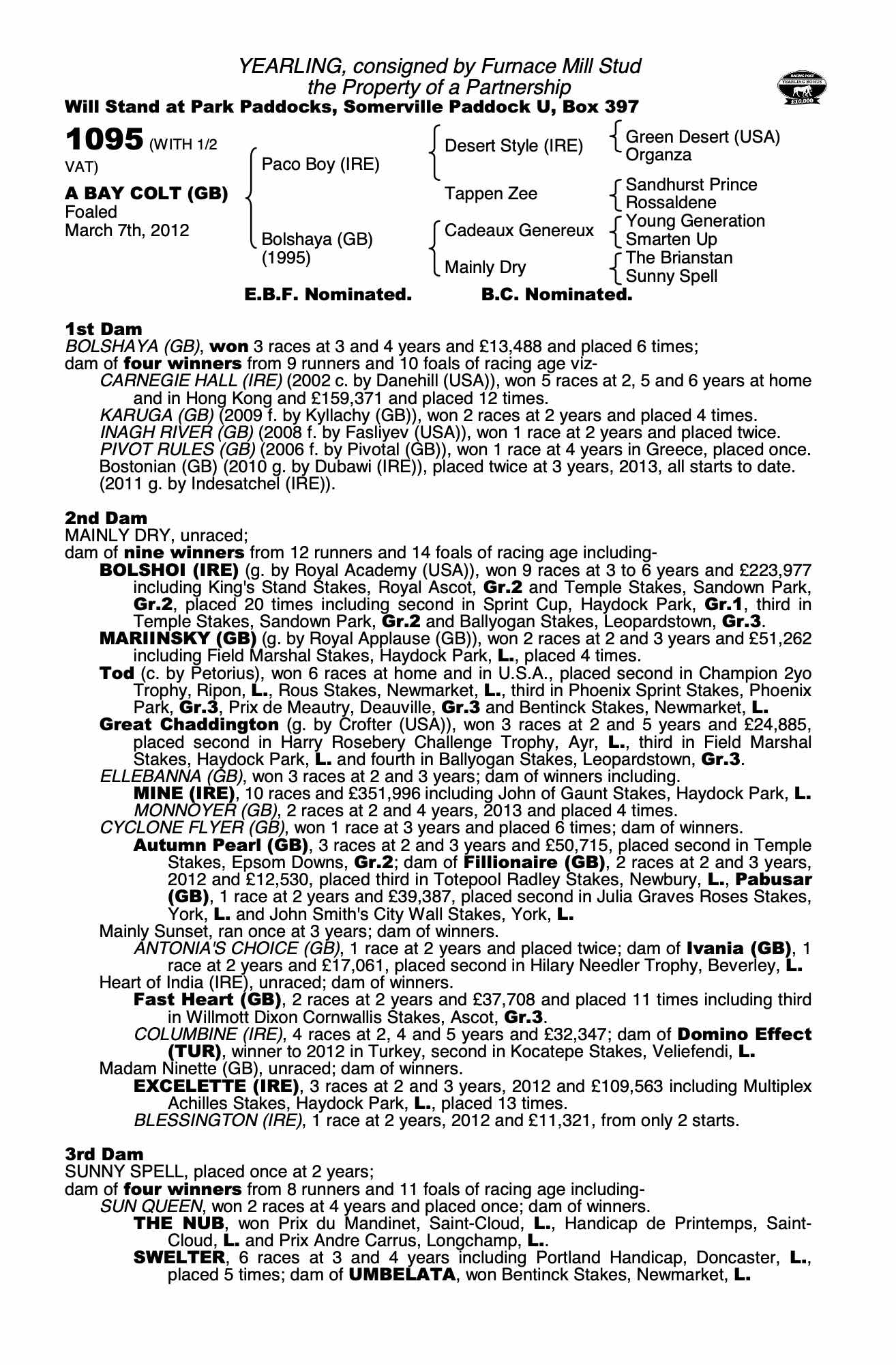 December Yearling Sale 2012 lot 223 C. by Indesatchel (IRE) 2011, Furnace Mill Stud=>Anthony Stroud Bloodstock 37,000 gns