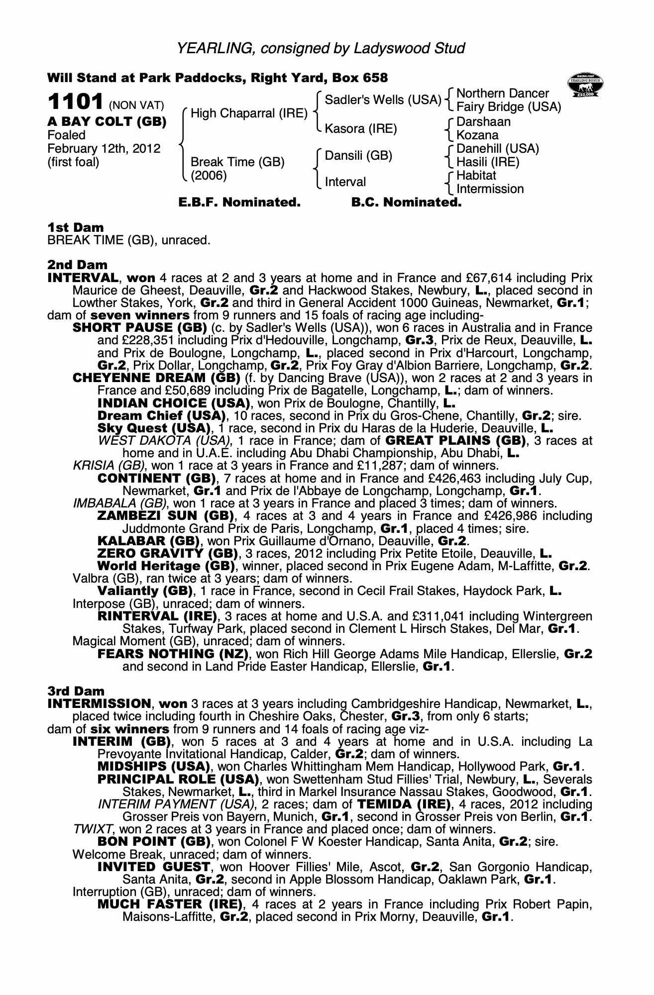 Consignor: Ladyswood Stud
