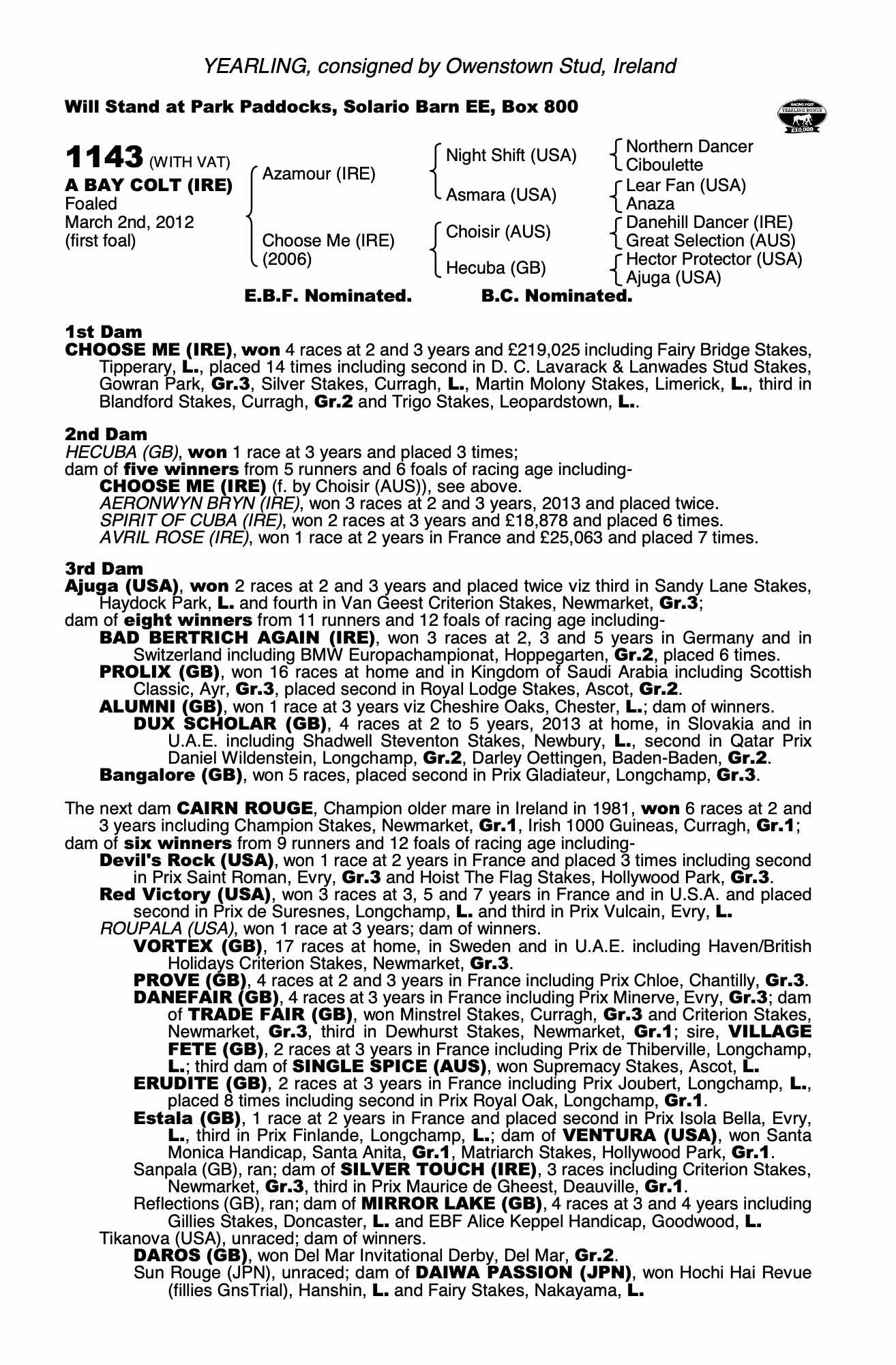 Consignor: Owenstown Stud, Ireland