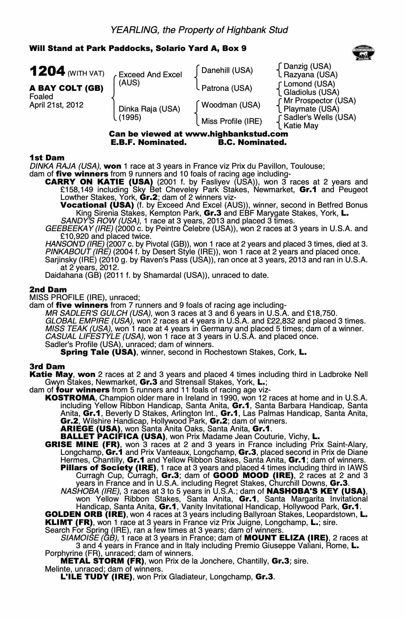 July Sale 2013 lot 653 Sarjinsky (IRE) (G. by Raven's Pass (USA)), St Gatien Stables (P. Chapple-Hyam)=>Gina Rarick 3,000 gns