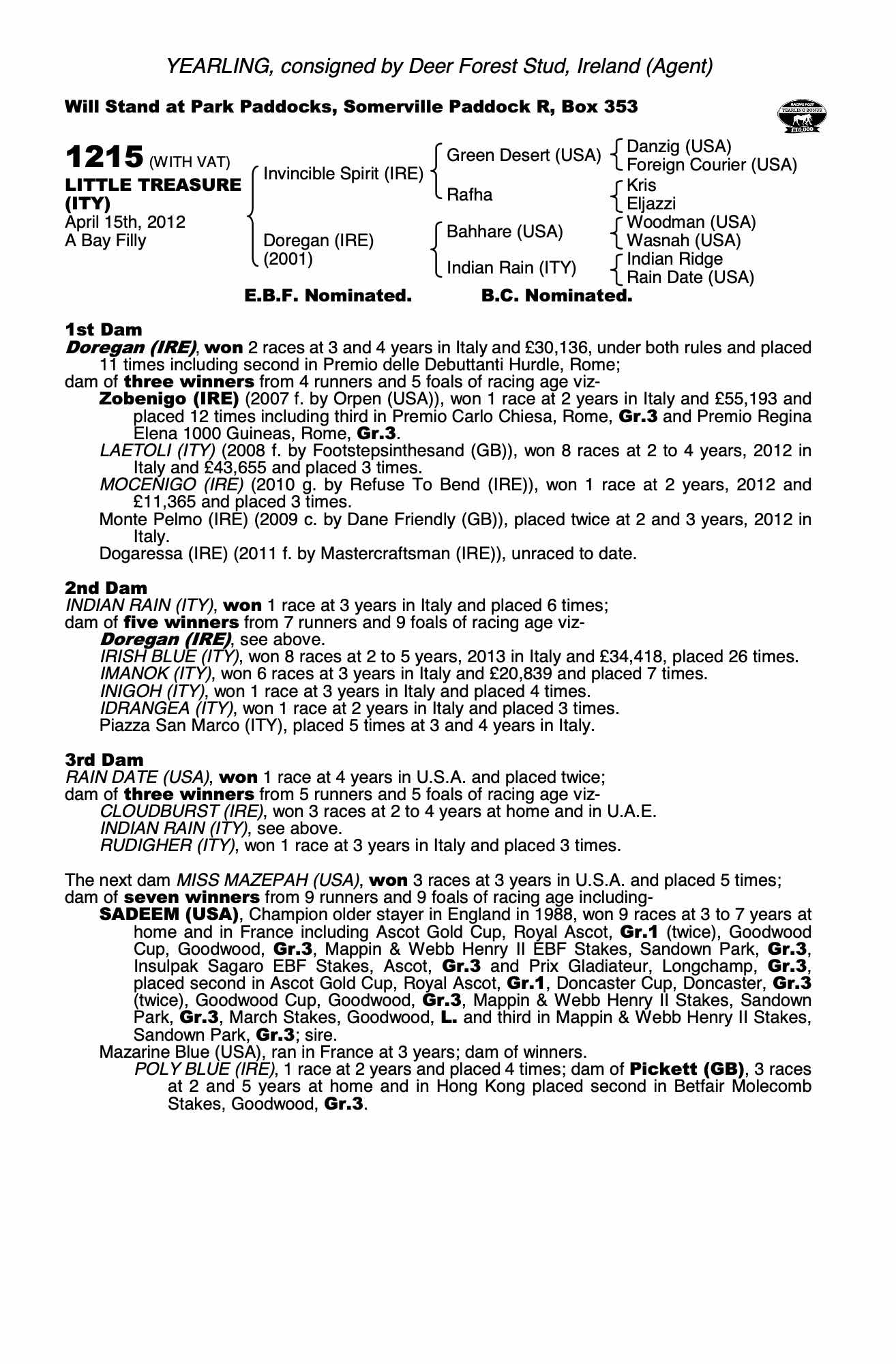 Consignor: Deer Forest Stud, Ireland (Agent)