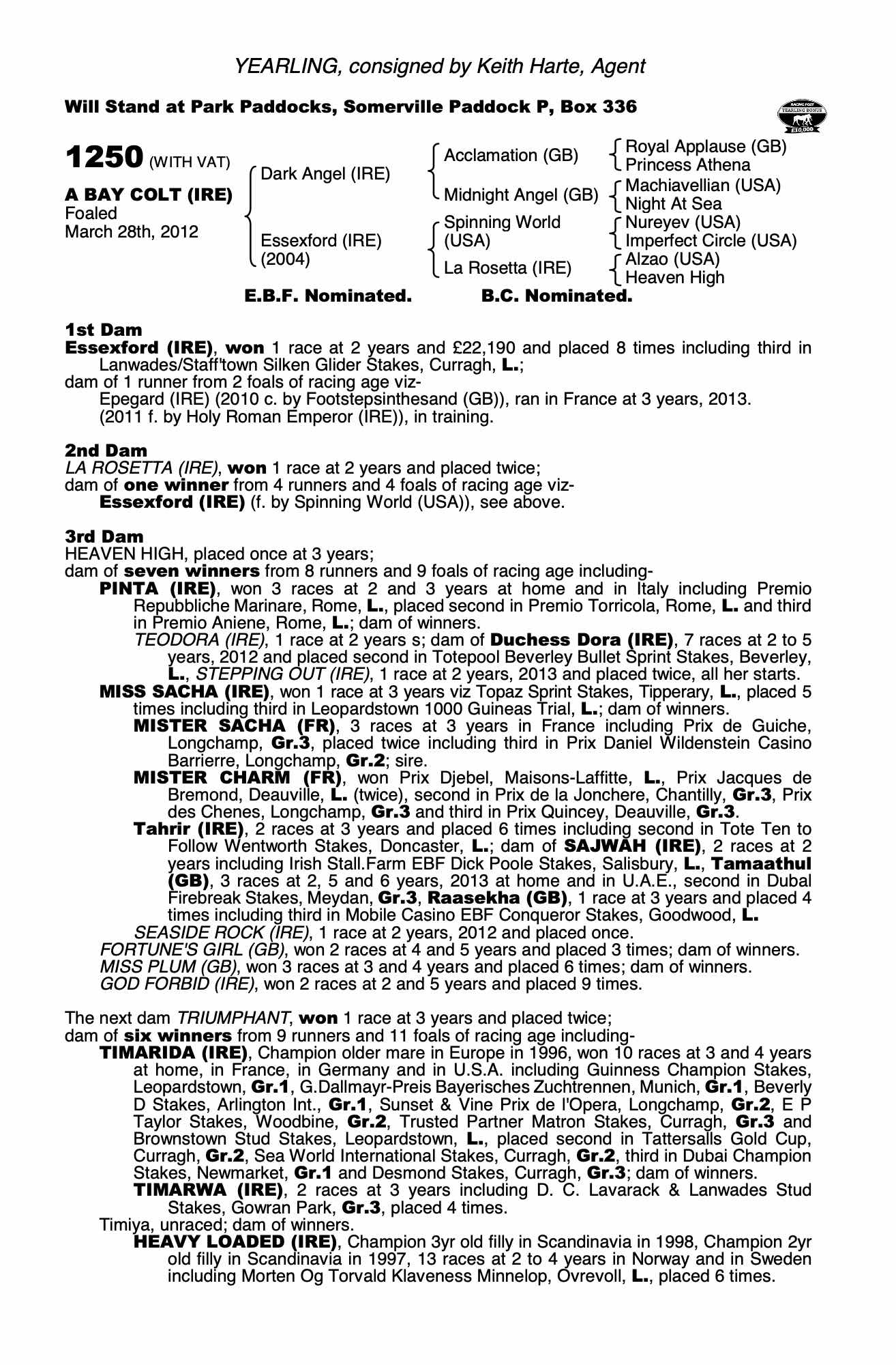 October Yearling Sale, Book 2 2012 lot 1545 F. by Holy Roman Emperor (IRE) 2011, Abbeyleix Stud, Ireland=>Vendor 20,000 gns