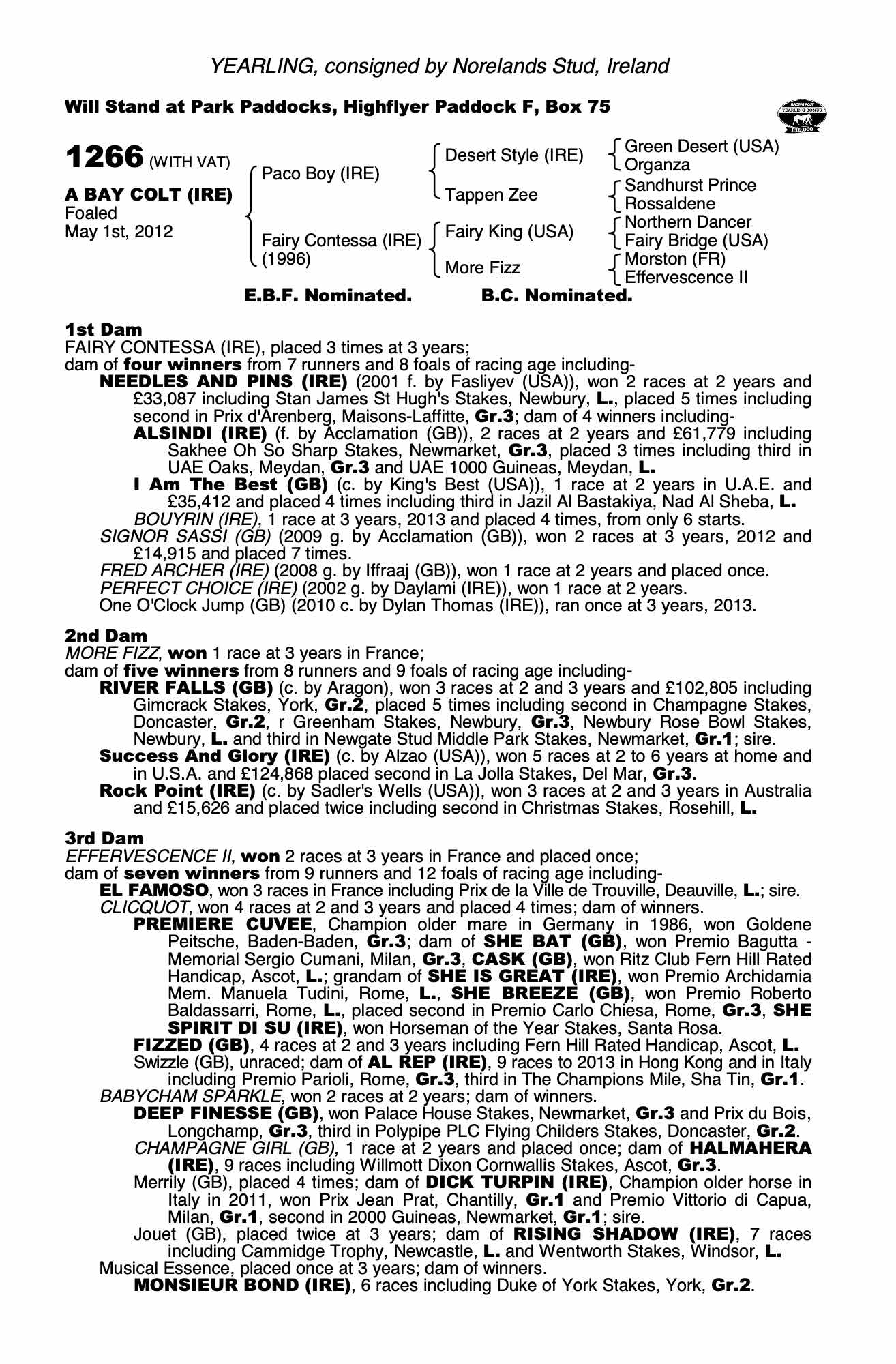 Consignor: Norelands Stud, Ireland