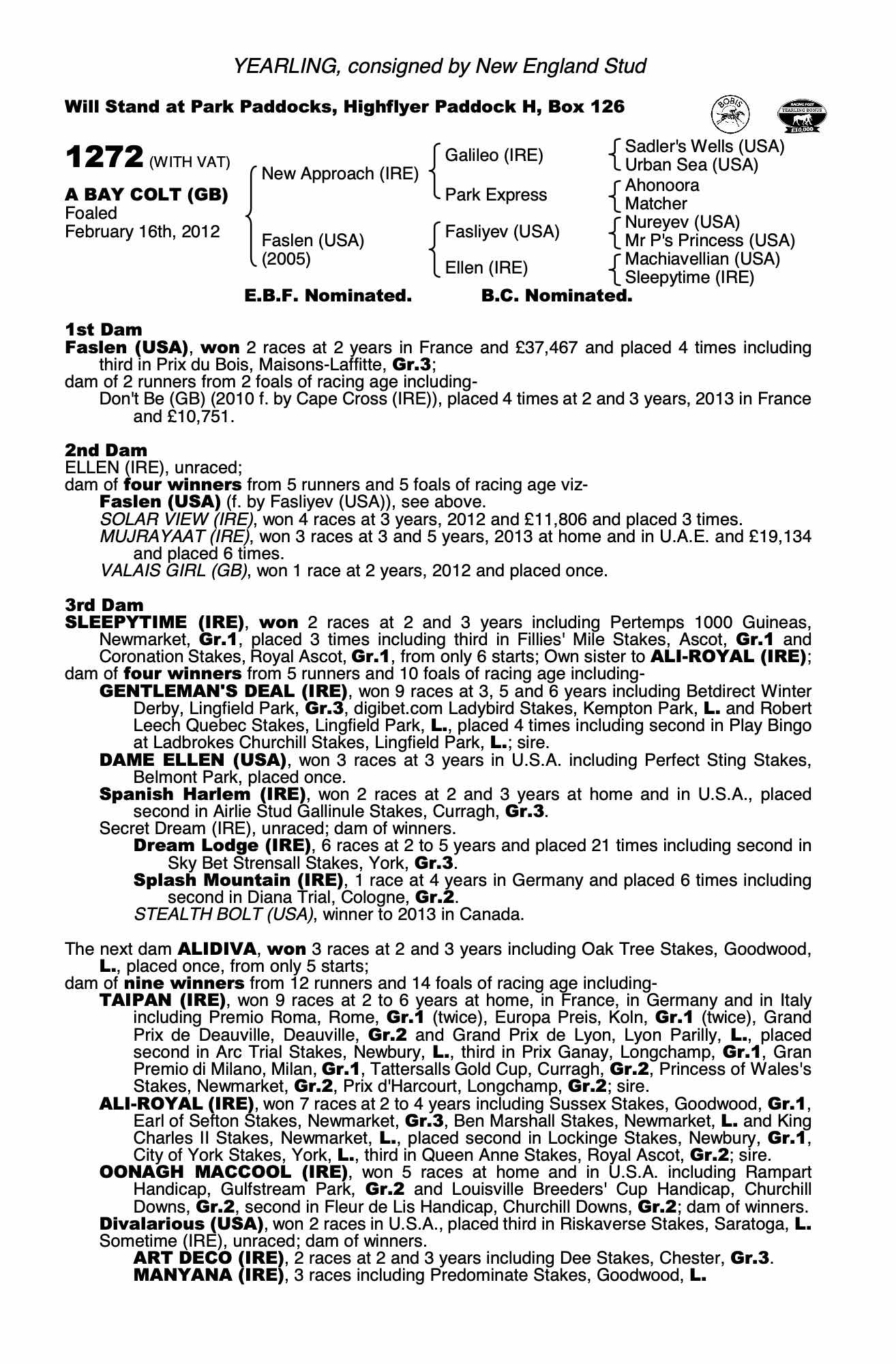 October Yearling Sale, Book 2 2016 lot 646 F. 2015, New England Stud=>P Barrett 50,000 gns