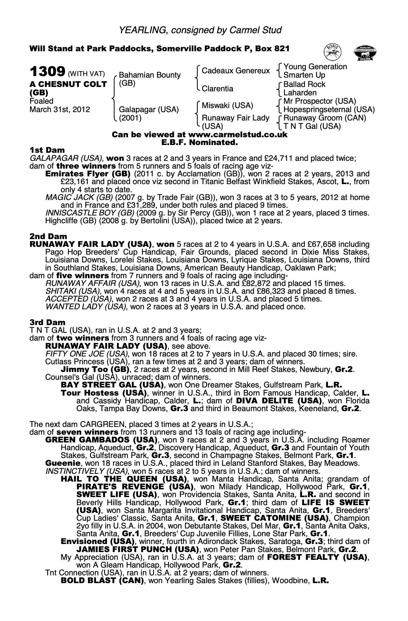 October Yearling Sale, Book 2 2014 lot 967 F. by Paco Boy (IRE) 2013, Carmel Stud=>Rabbah Bloodstock 75,000 gns