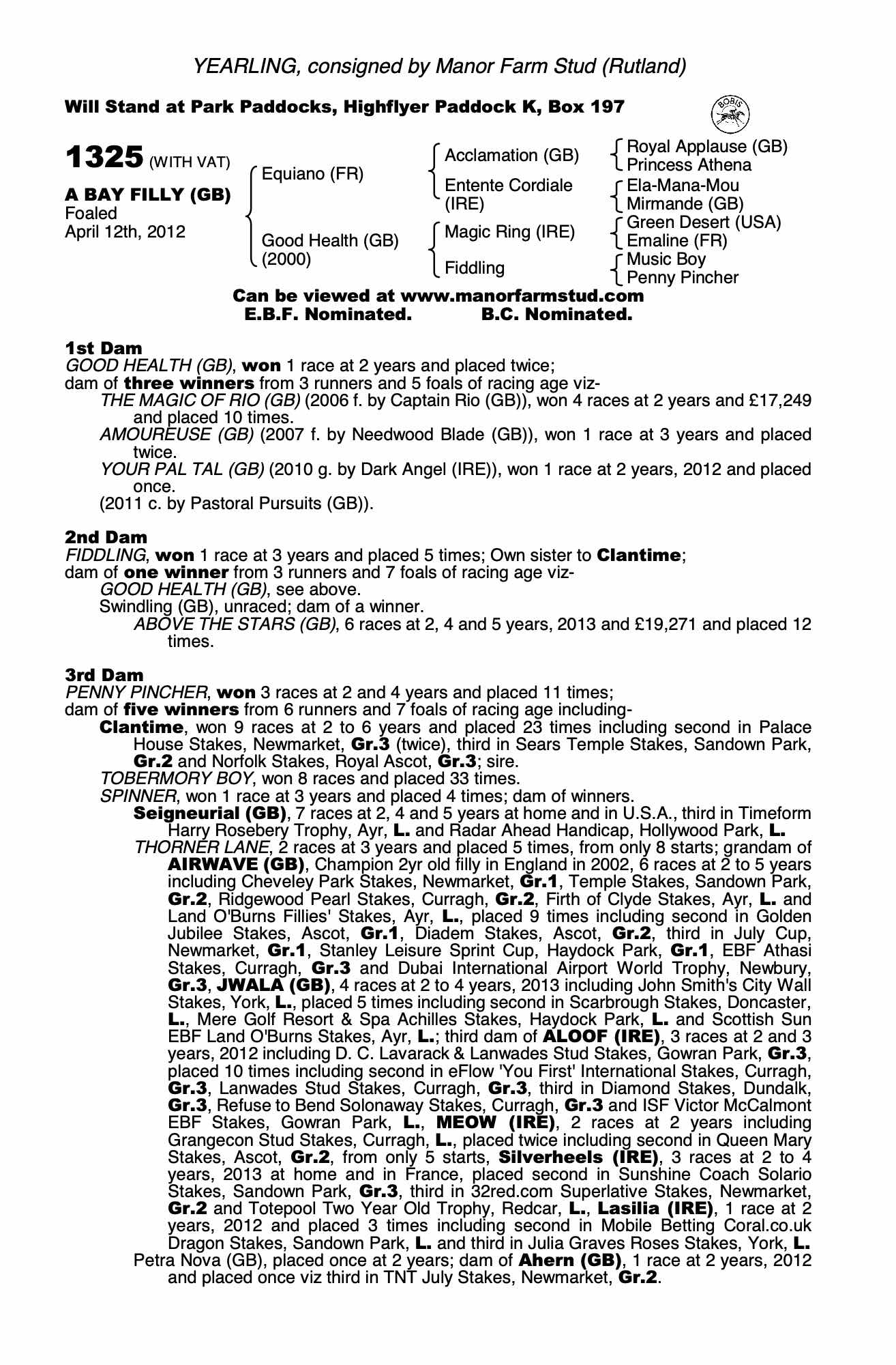 Consignor: Manor Farm Stud (Rutland)