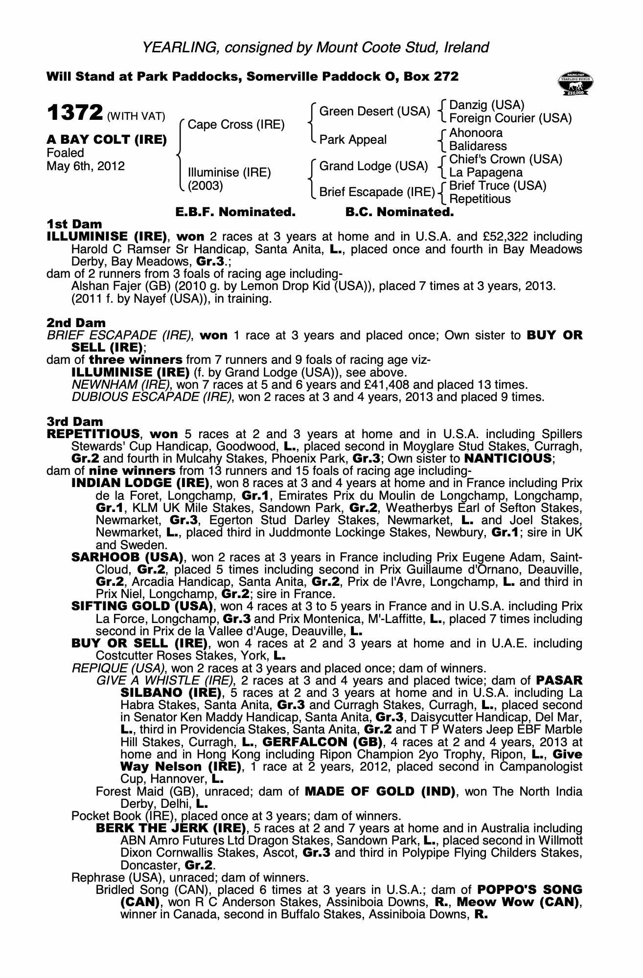 October Yearling Sale, Book 2 2012 lot 608 F. by Nayef (USA) 2011, Mount Coote Stud, Ireland=>Edward Lynam 10,000 gns