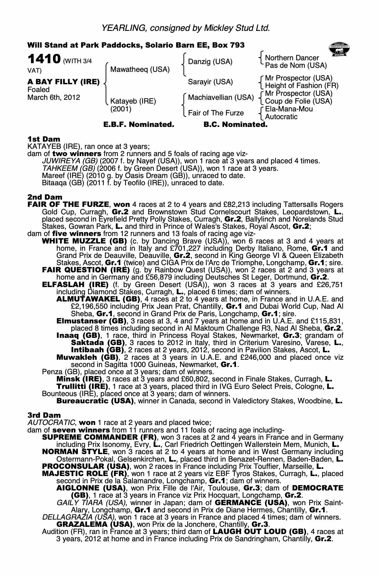 Consignor: Mickley Stud Ltd.