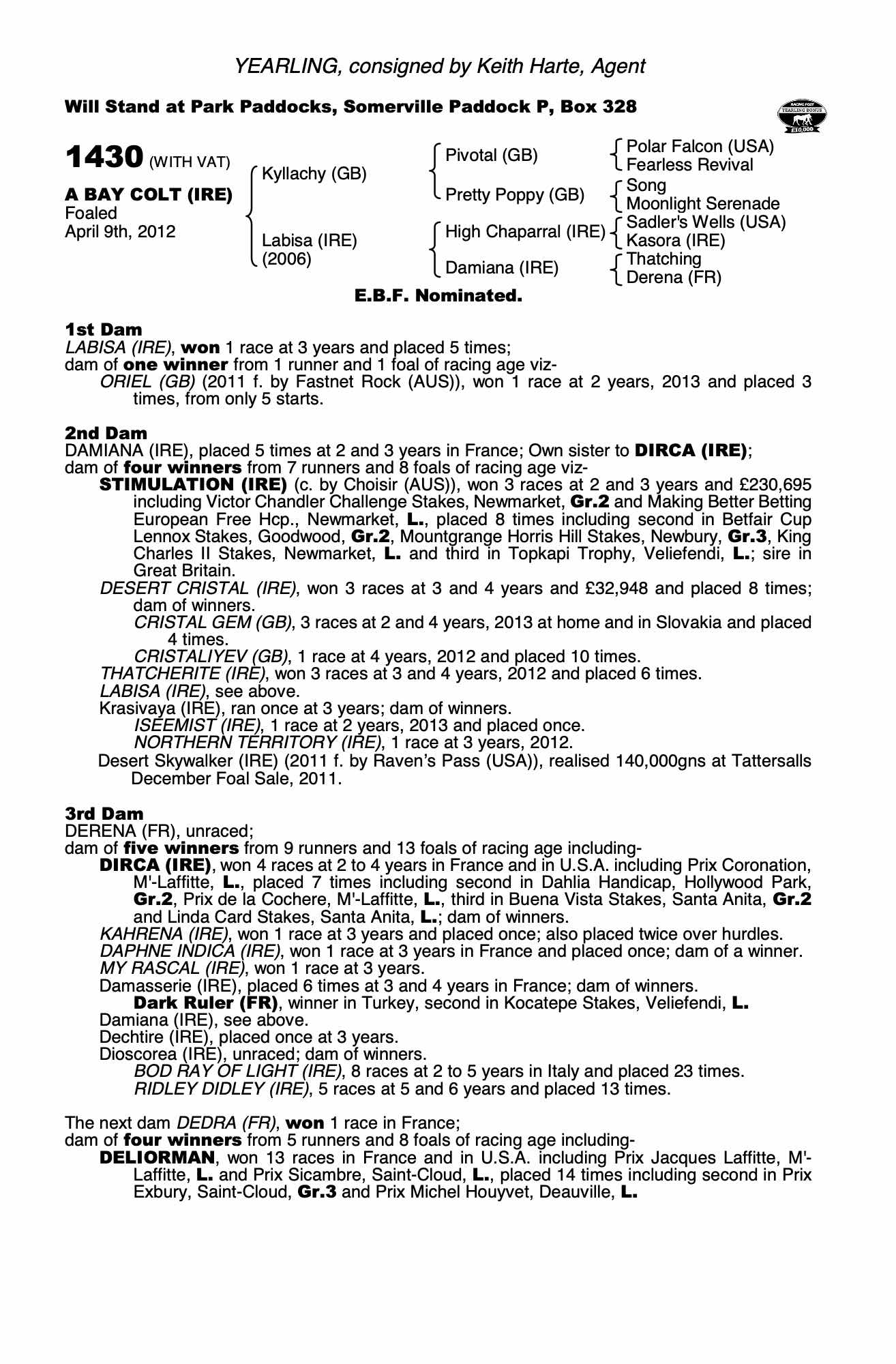 October Yearling Sale, Book 3 2015 lot 1948 F. by Bated Breath (GB) 2014, Keith Harte (Agent)=>Jane Chapple-Hyam 10,000 gns