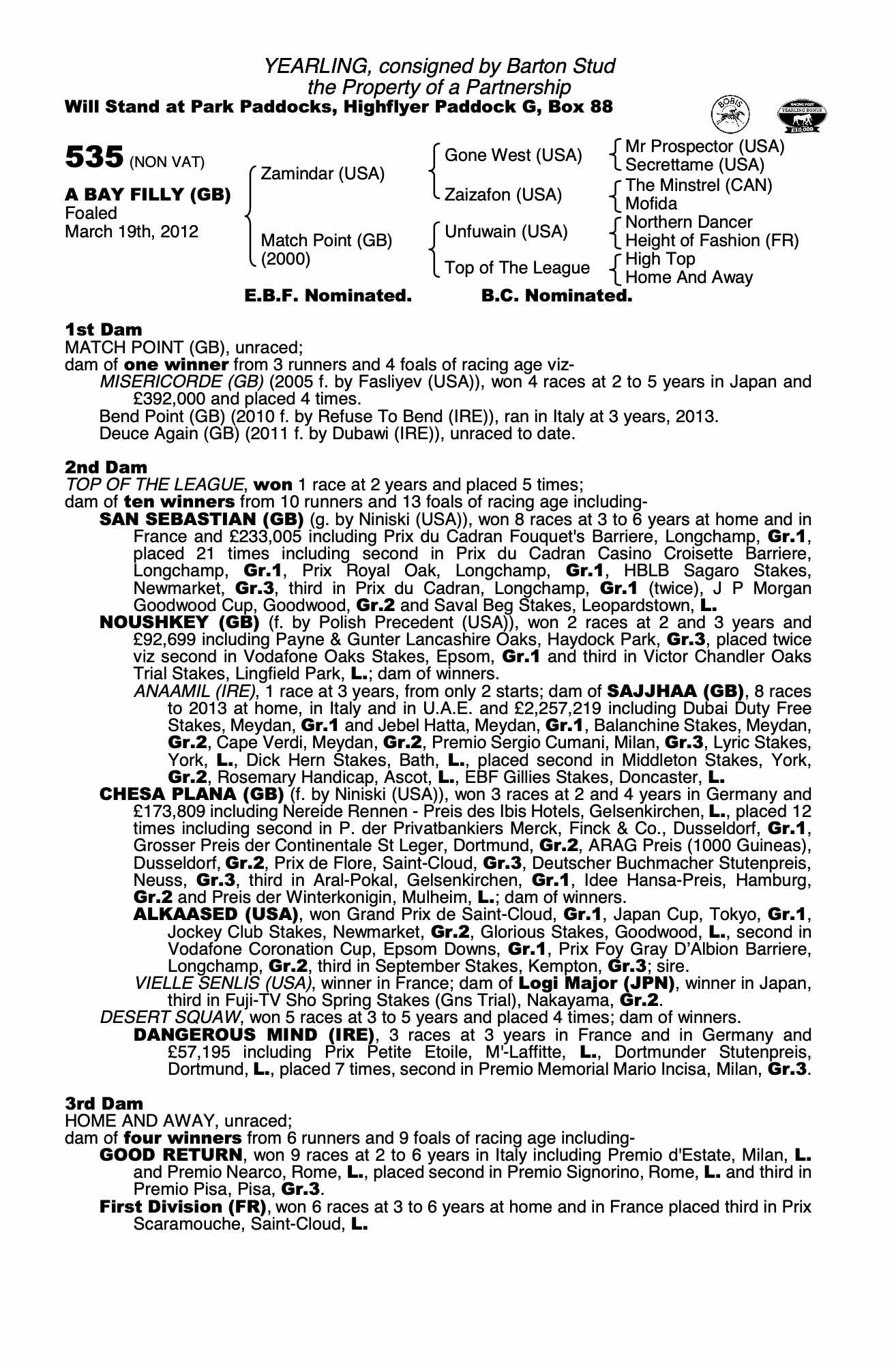 October Yearling Sale, Book 2 2014 lot 1155 F. by Poet's Voice (GB) 2013, Brightwalton Stud=>Lot Not Sold 11,000 gns