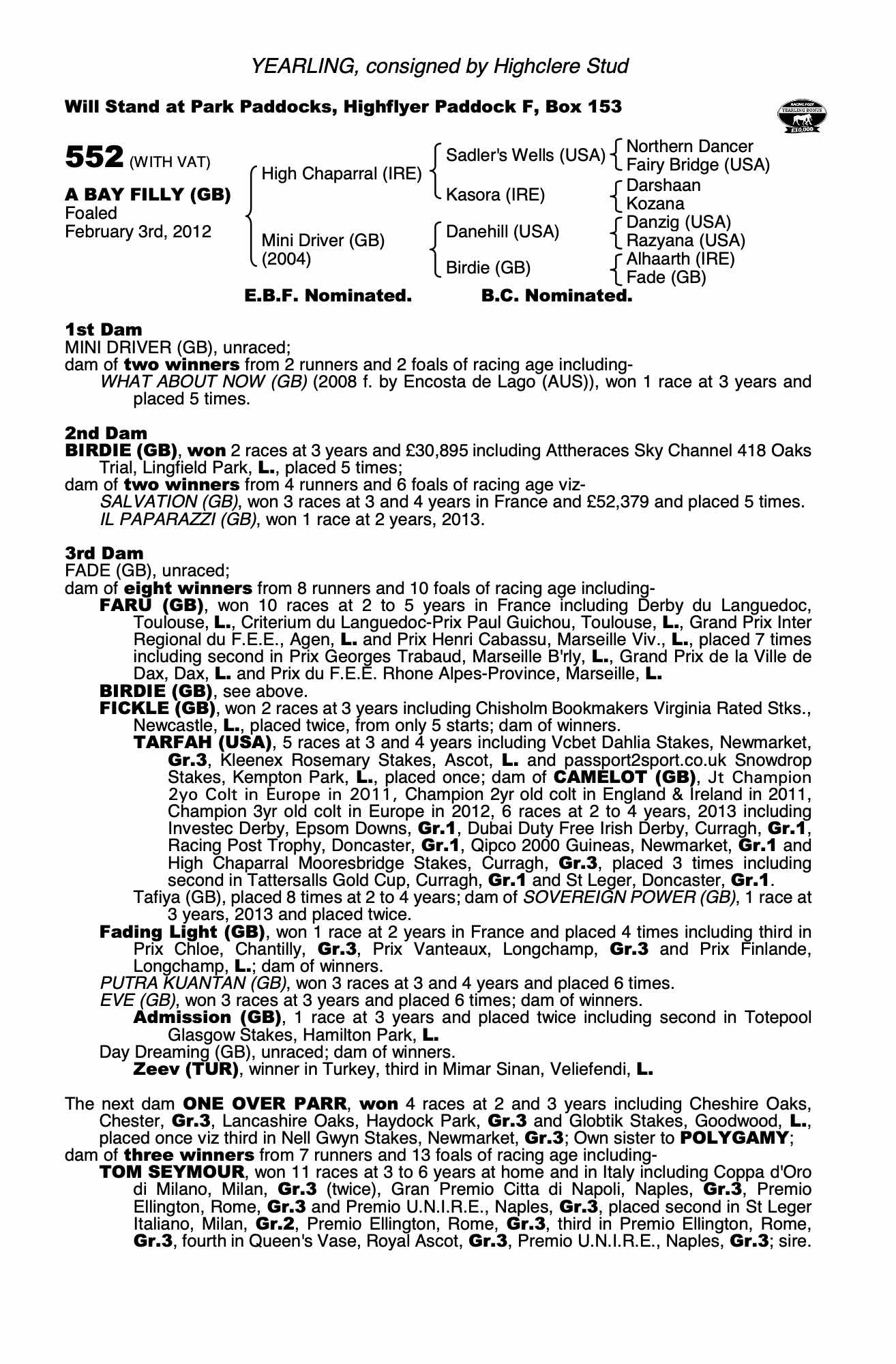 Consignor: Highclere Stud