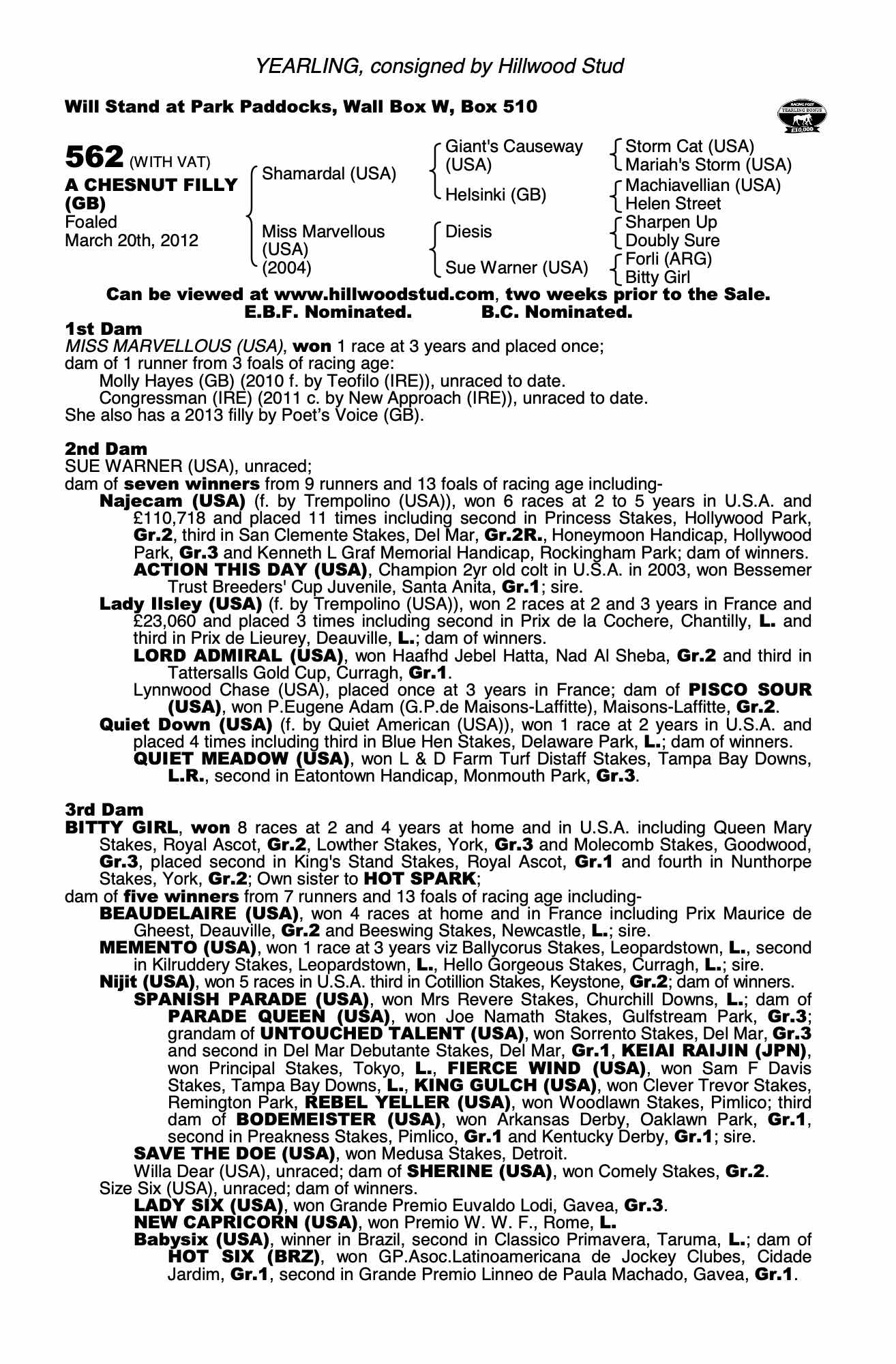 Consignor: Hillwood Stud