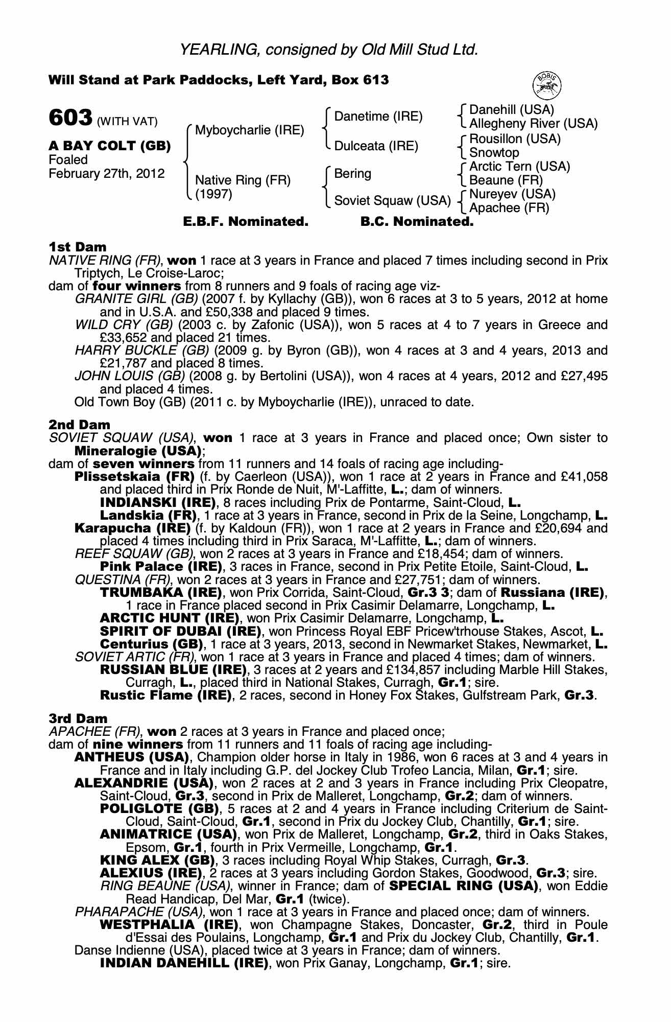 October Yearling Sale, Book 2 2012 lot 832 C. 2011, Old Mill Stud Ltd.=>Lot Not Sold 9,000 gns
