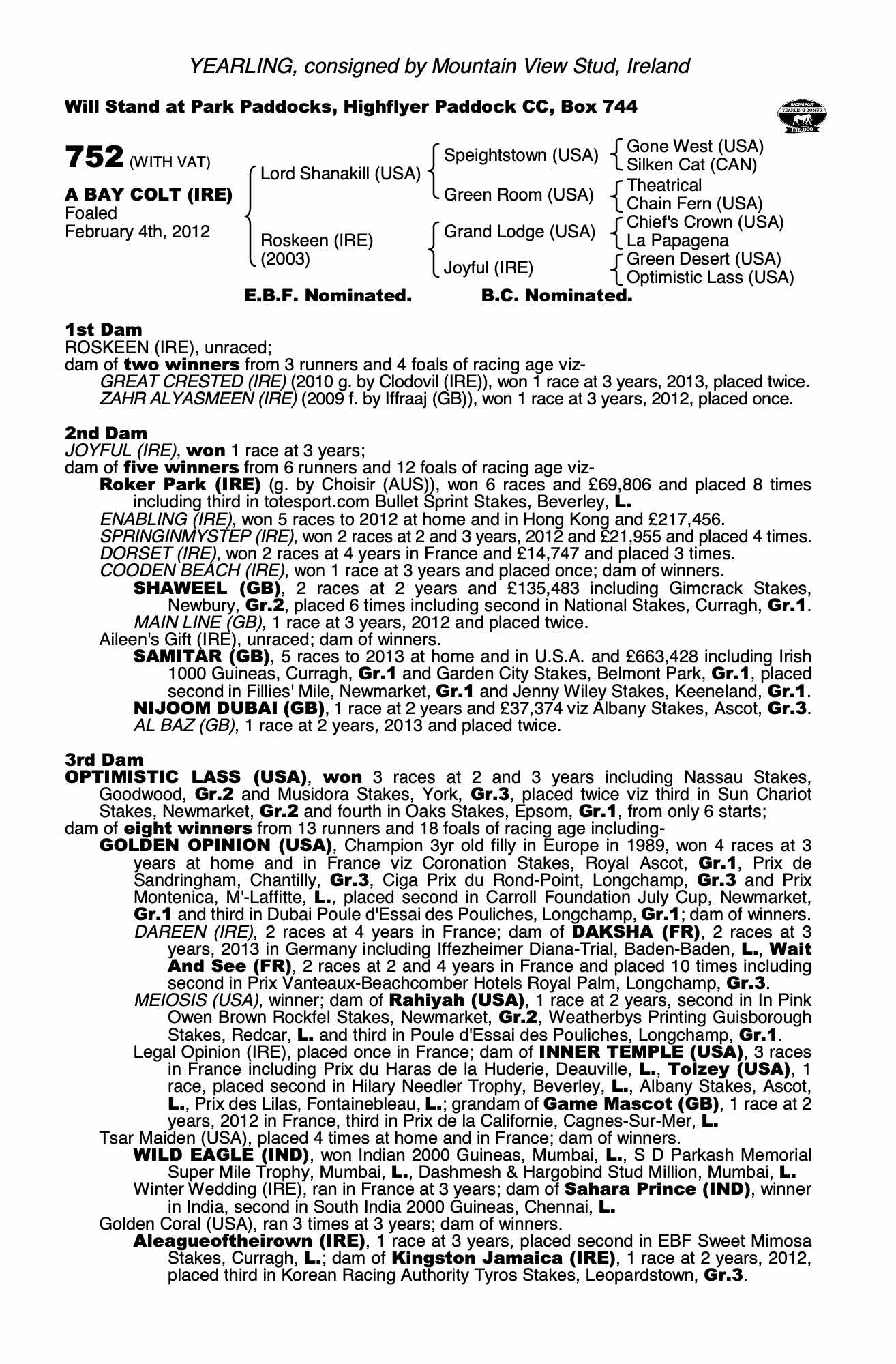 Consignor: Mountain View Stud, Ireland