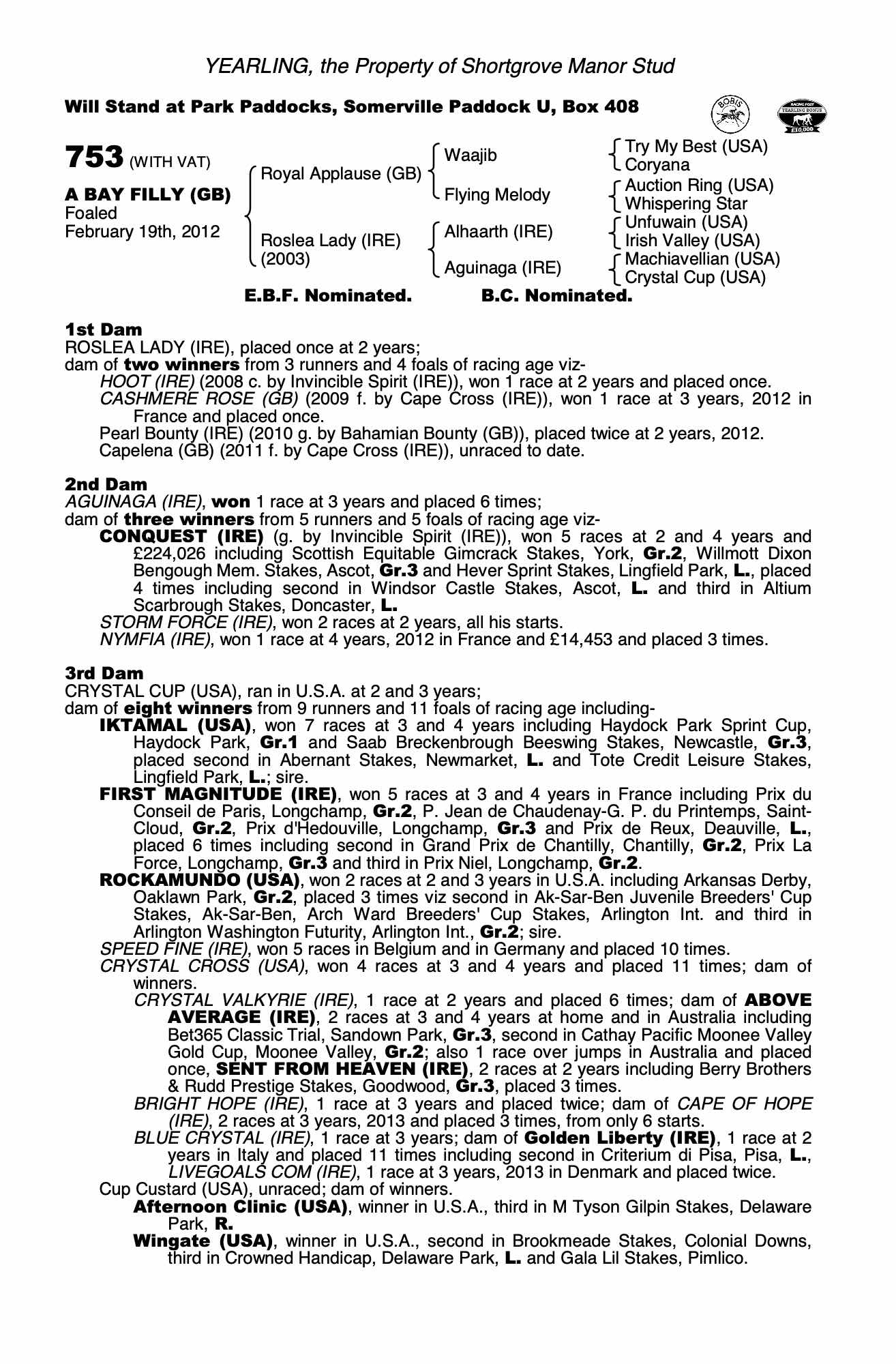 October Yearling Sale, Book 2 2012 lot 1001 F. by Cape Cross (IRE) 2011, Shortgrove Manor Stud=>Rabbah Bloodstock 40,000 gns