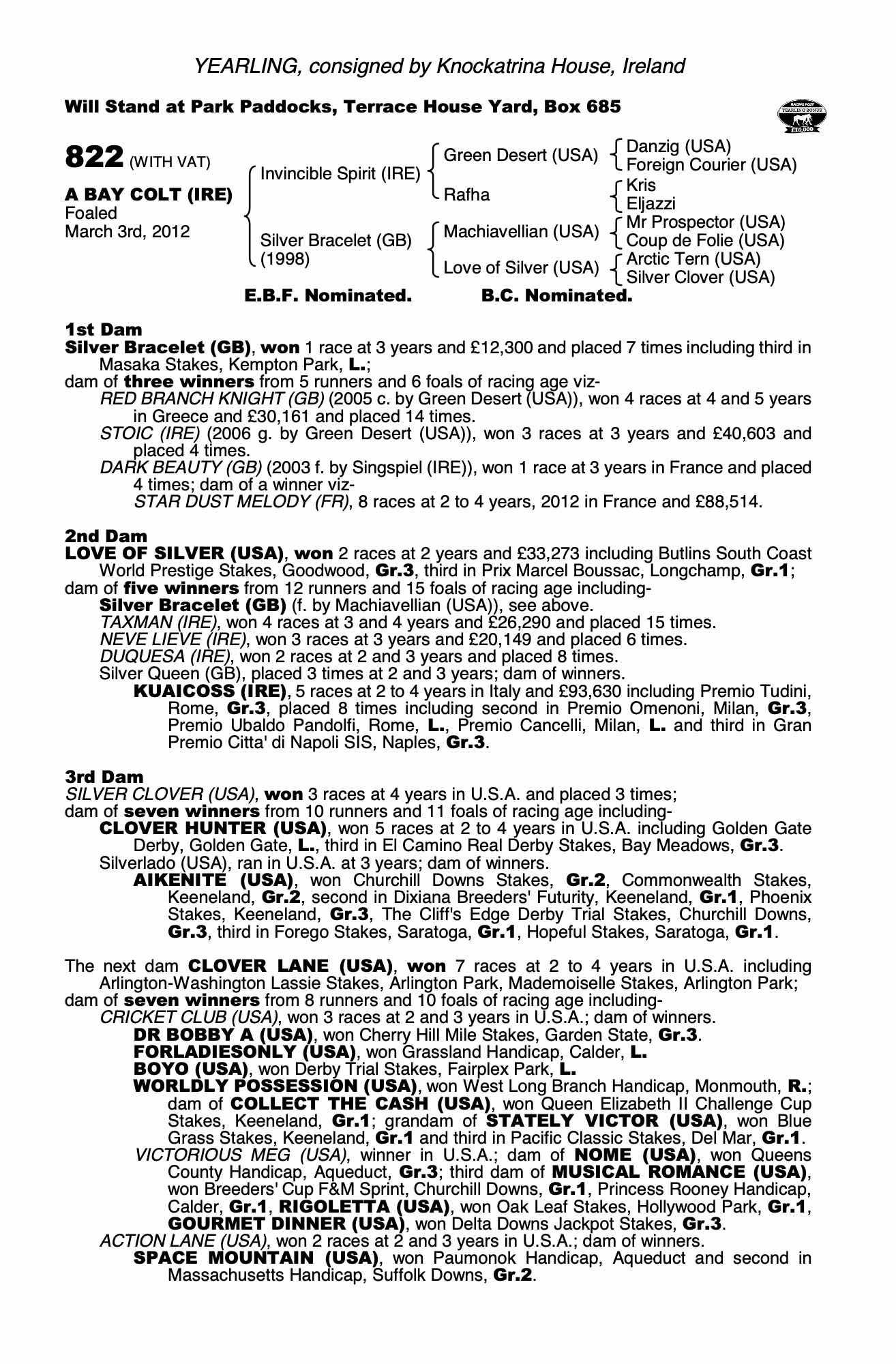Invincible Spirit (IRE) / Silver Bracelet (GB) B.C. (IRE)