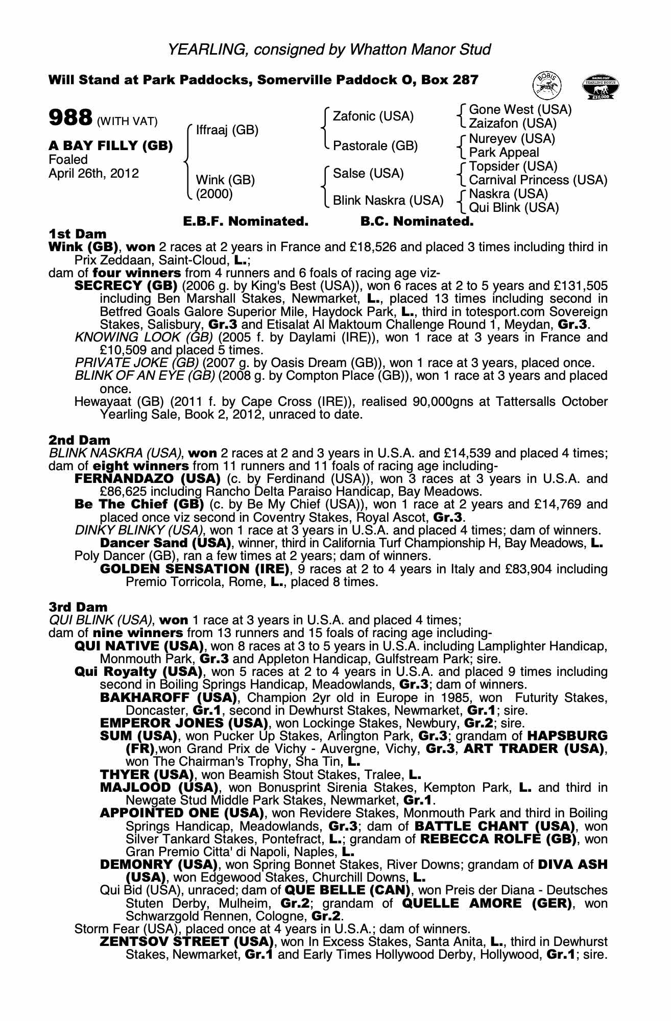 Consignor: Whatton Manor Stud