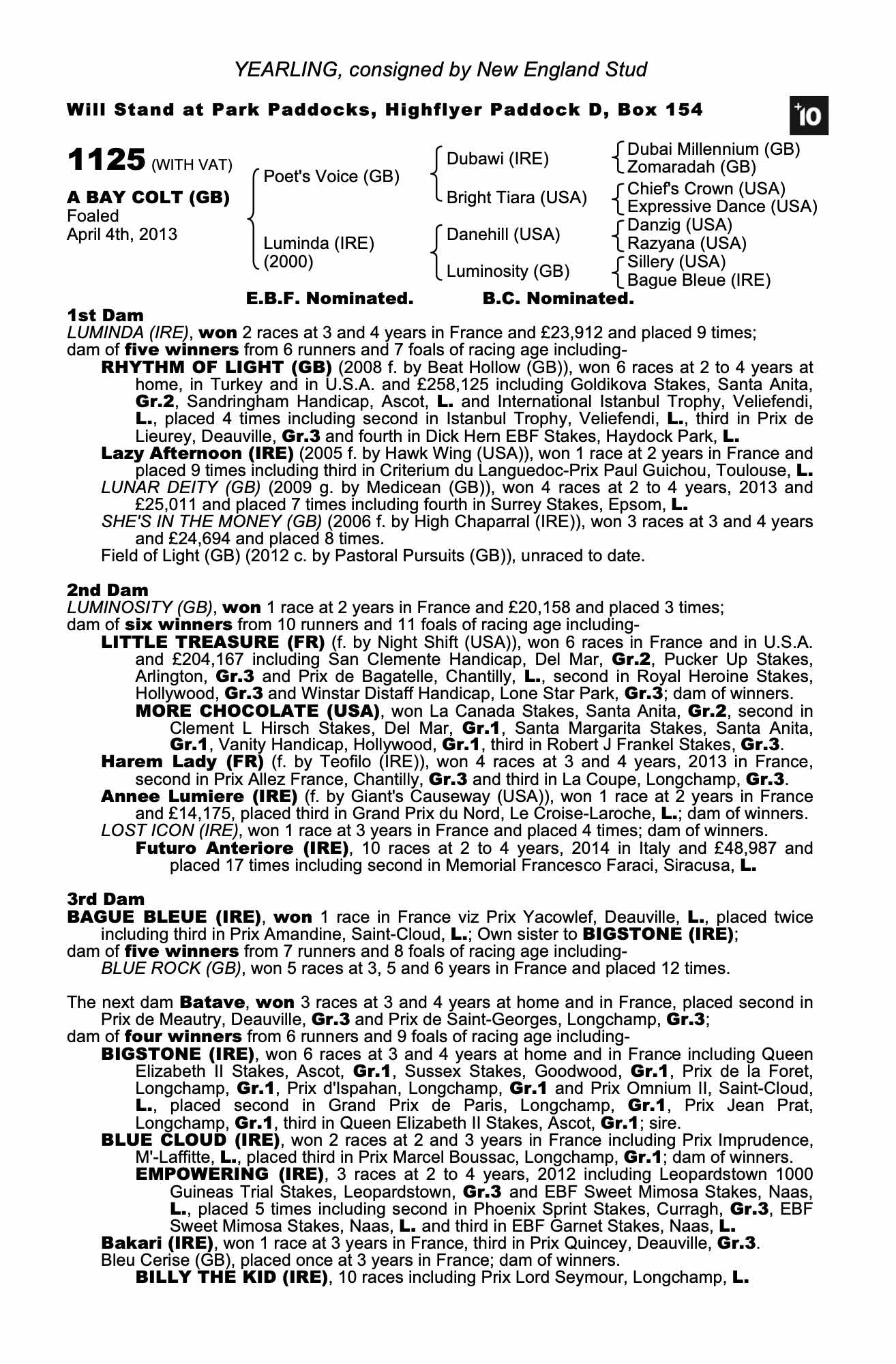 October Yearling Sale, Book 2 2015 lot 1032 F. by Nathaniel (IRE) 2014, New England Stud=>Vendor 38,000 gns