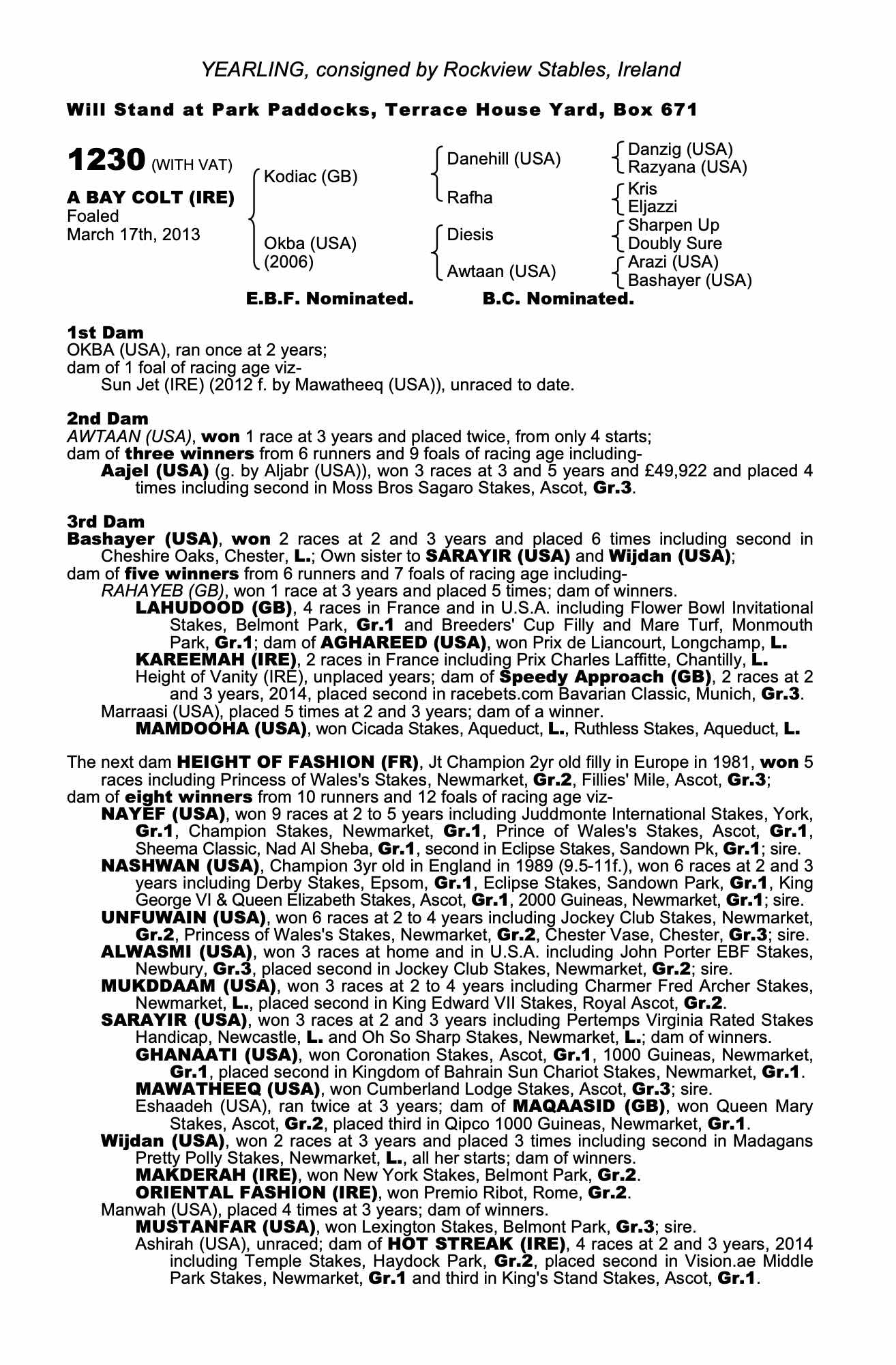 February Sale 2018 lot 291, David O'Meara Racing Ltd.=>Vendor 14,000 gns