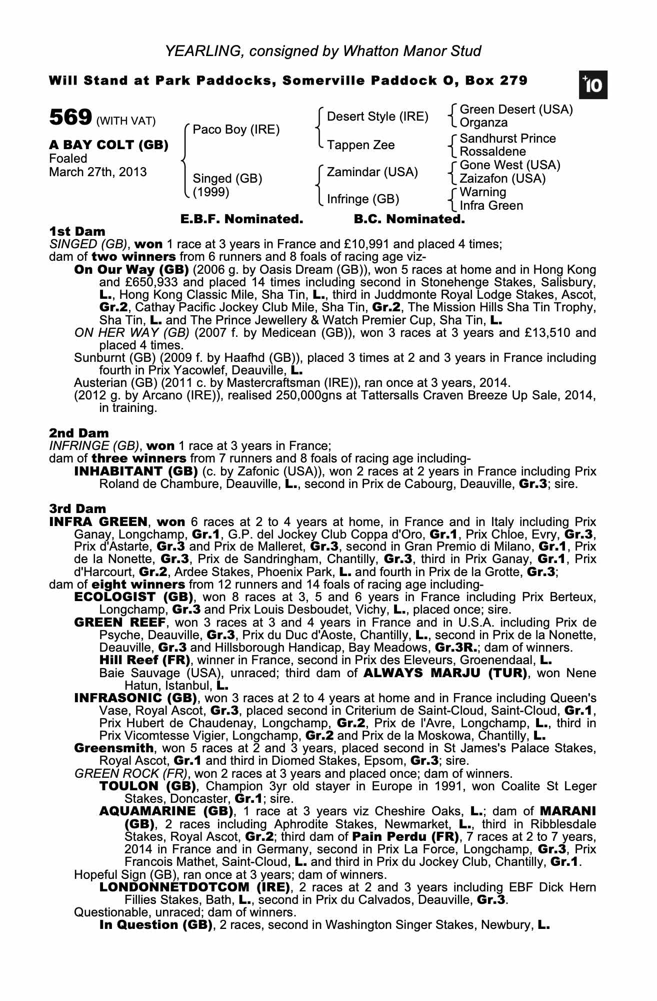 Consignor: Whatton Manor Stud