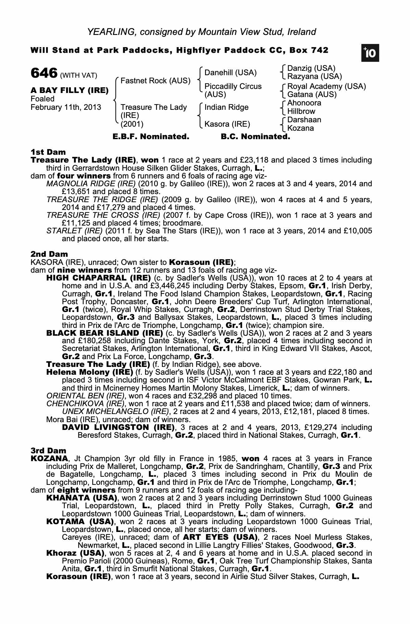 Autumn Horses in Training Sale 2013 lot 1110 Treasure The Ridge (IRE) (G. by Galileo (IRE)), Rosewell House Stables, Ireland (D. K. Weld)=>Vanessa Johnson 8,000 gns
