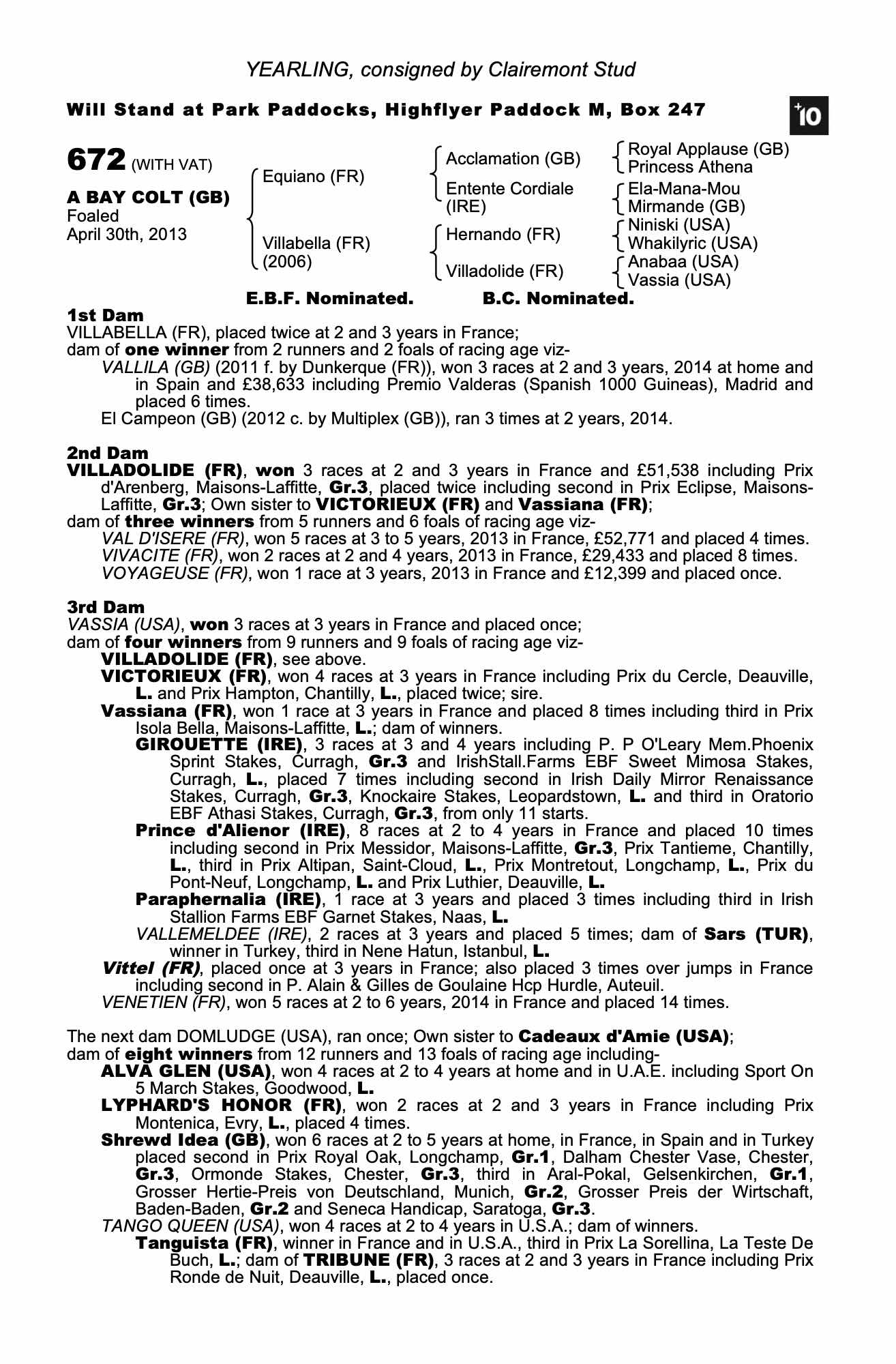 Consignor: Clairemont Stud