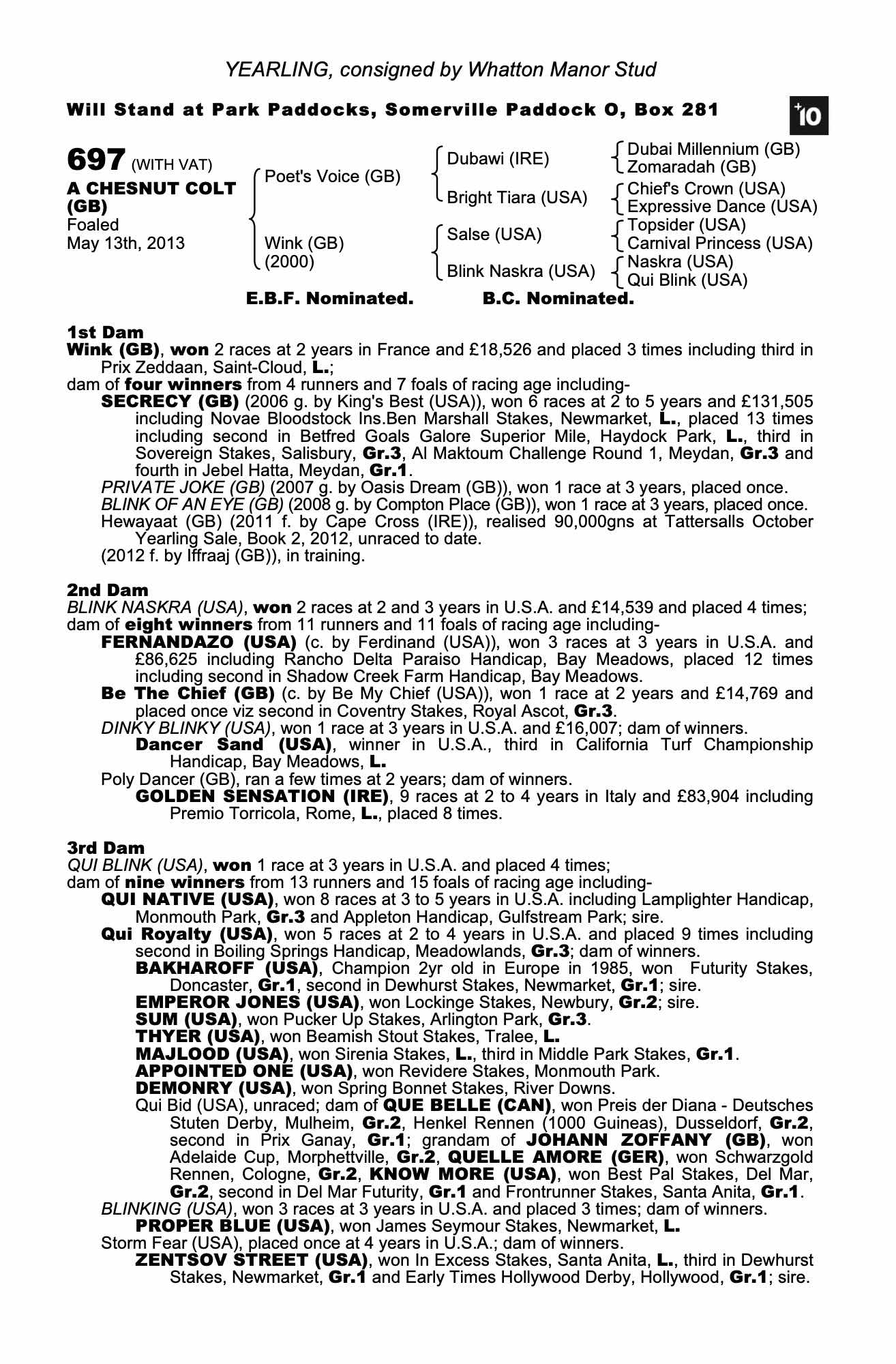 Consignor: Whatton Manor Stud