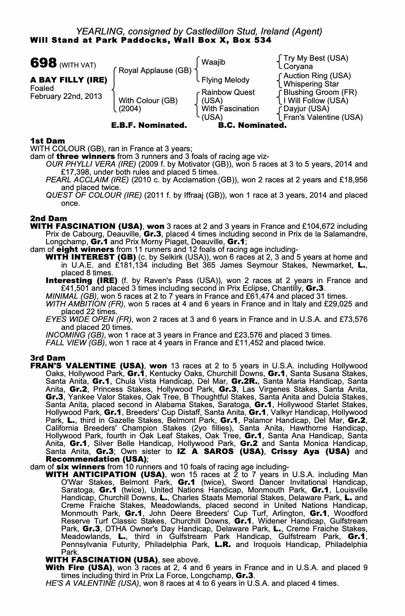 Consignor: Castledillon Stud, Ireland (Agent)