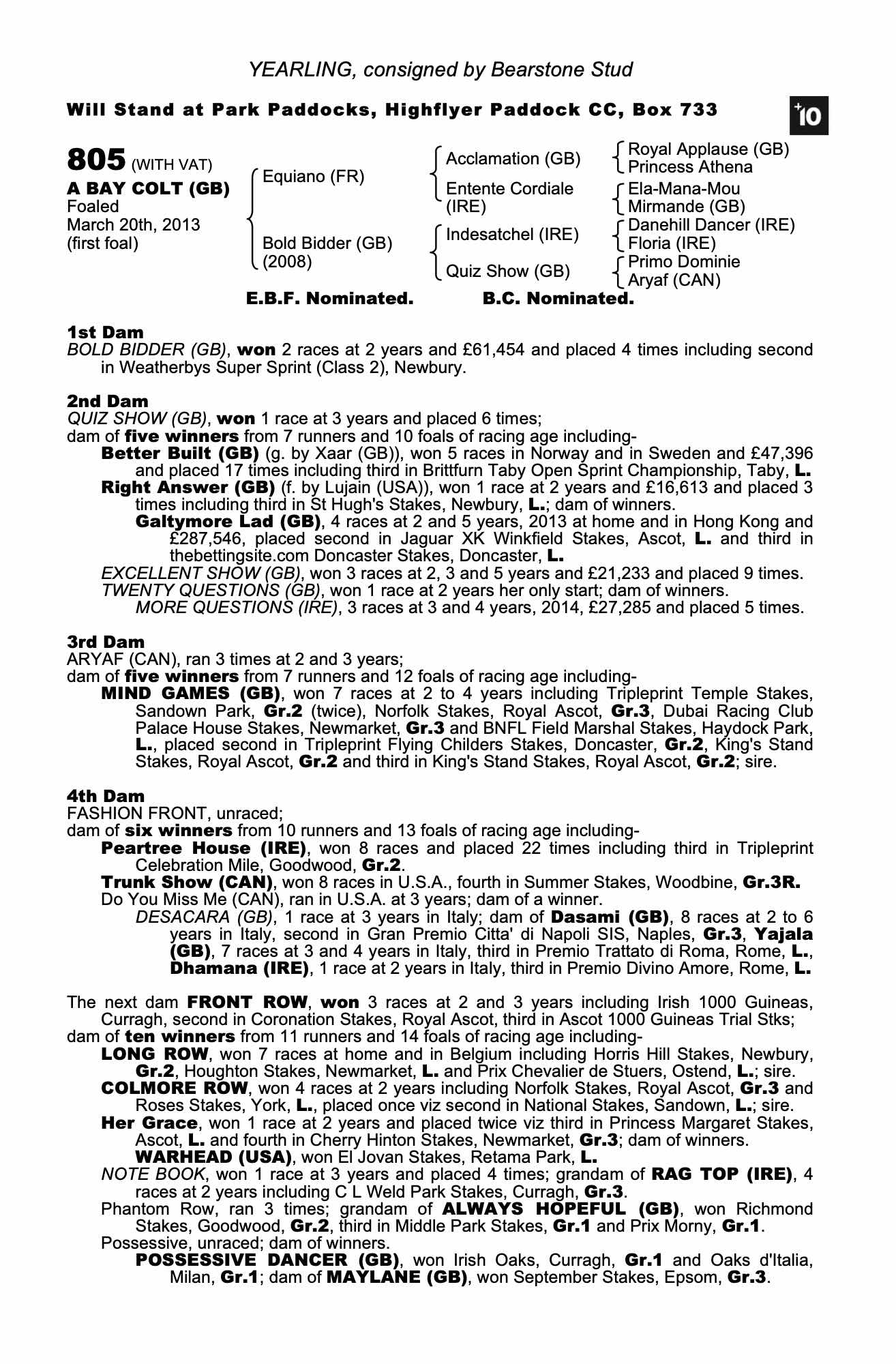 October Yearling Sale, Book 3 2015 lot 1833 C. by Major Cadeaux (GB) 2014, Bearstone Stud=>Franconson Partners 5,500 gns