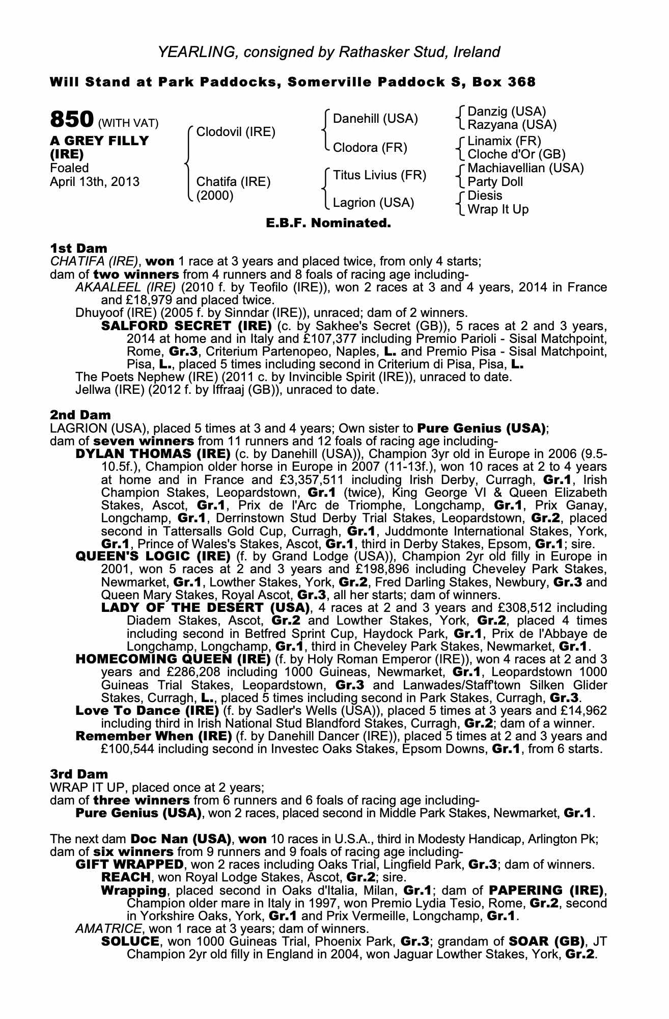 October Yearling Sale, Book 2 2013 lot 1133 F. by Iffraaj (GB) 2012, Rathasker Stud, Ireland=>Gill Richardson Bloodstock 40,000 gns