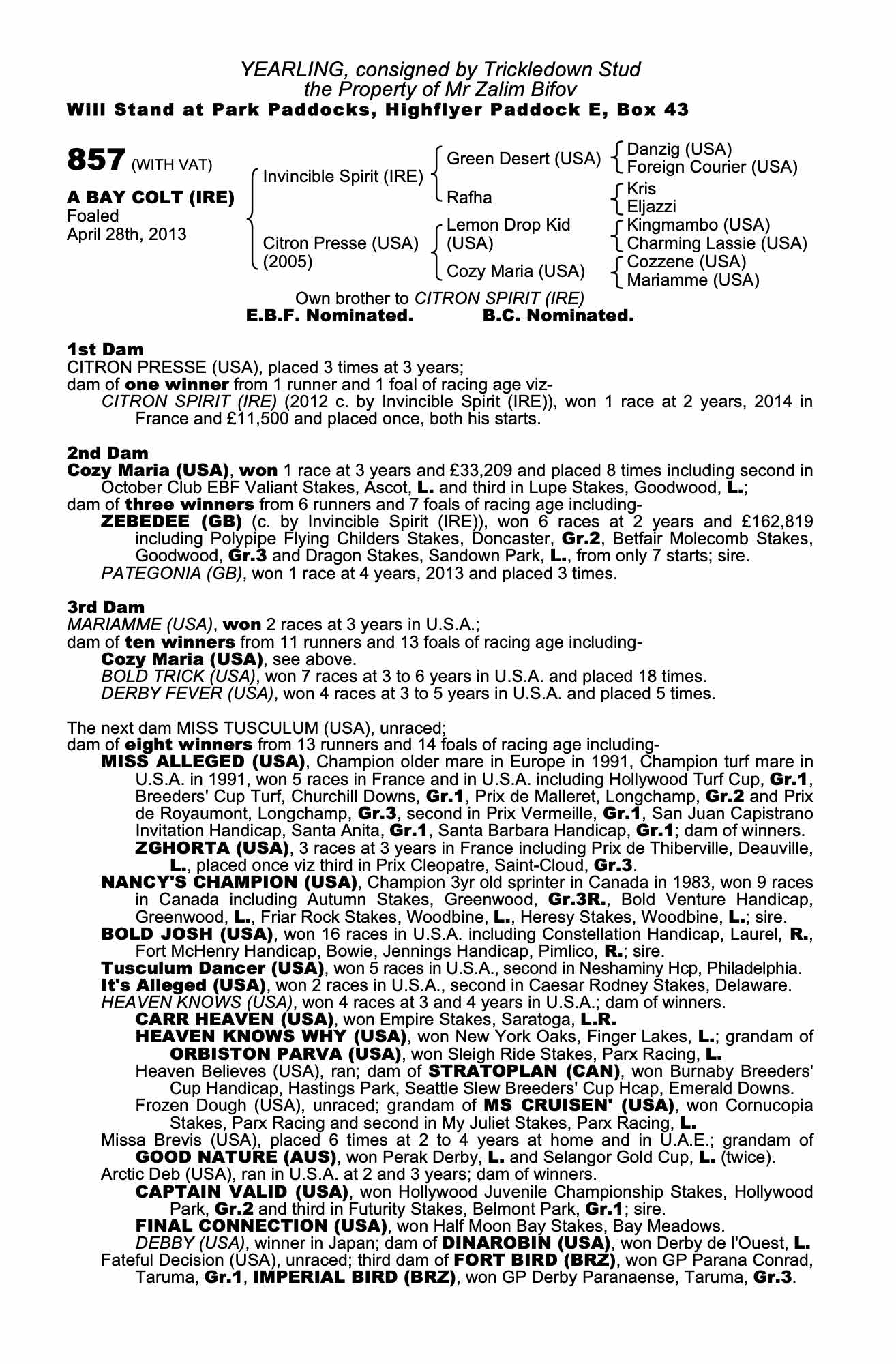Lot 857 Invincible Spirit (IRE) /Citron Presse (USA) B.C. (IRE)