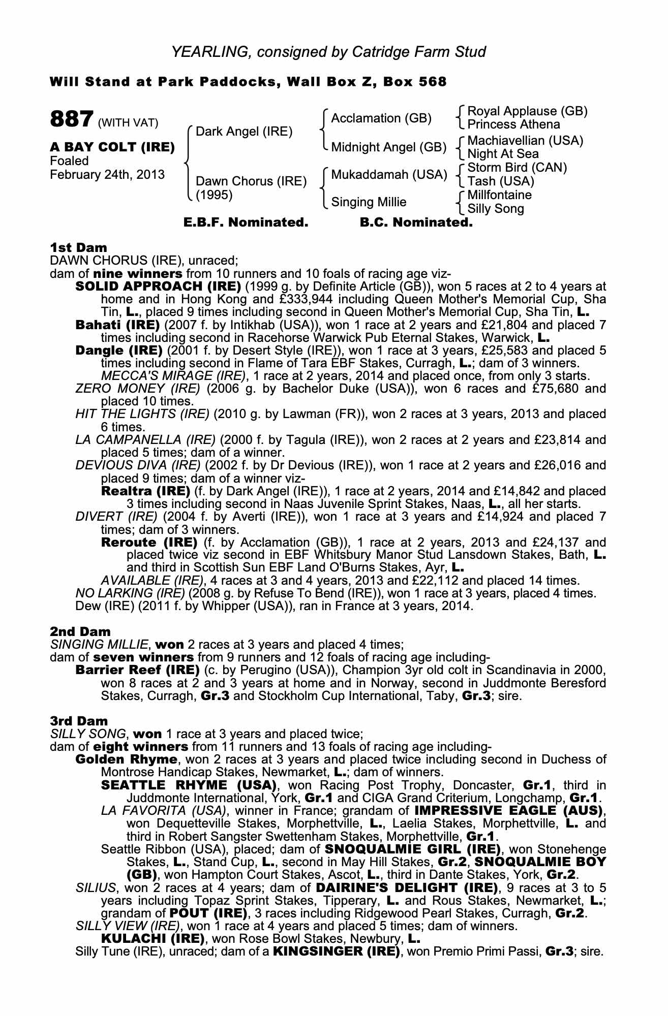 December Yearling Sale 2012 lot 202 F. by Whipper (USA) 2011, Ballylinch Stud, Ireland=>Lot Not Sold 7,500 gns