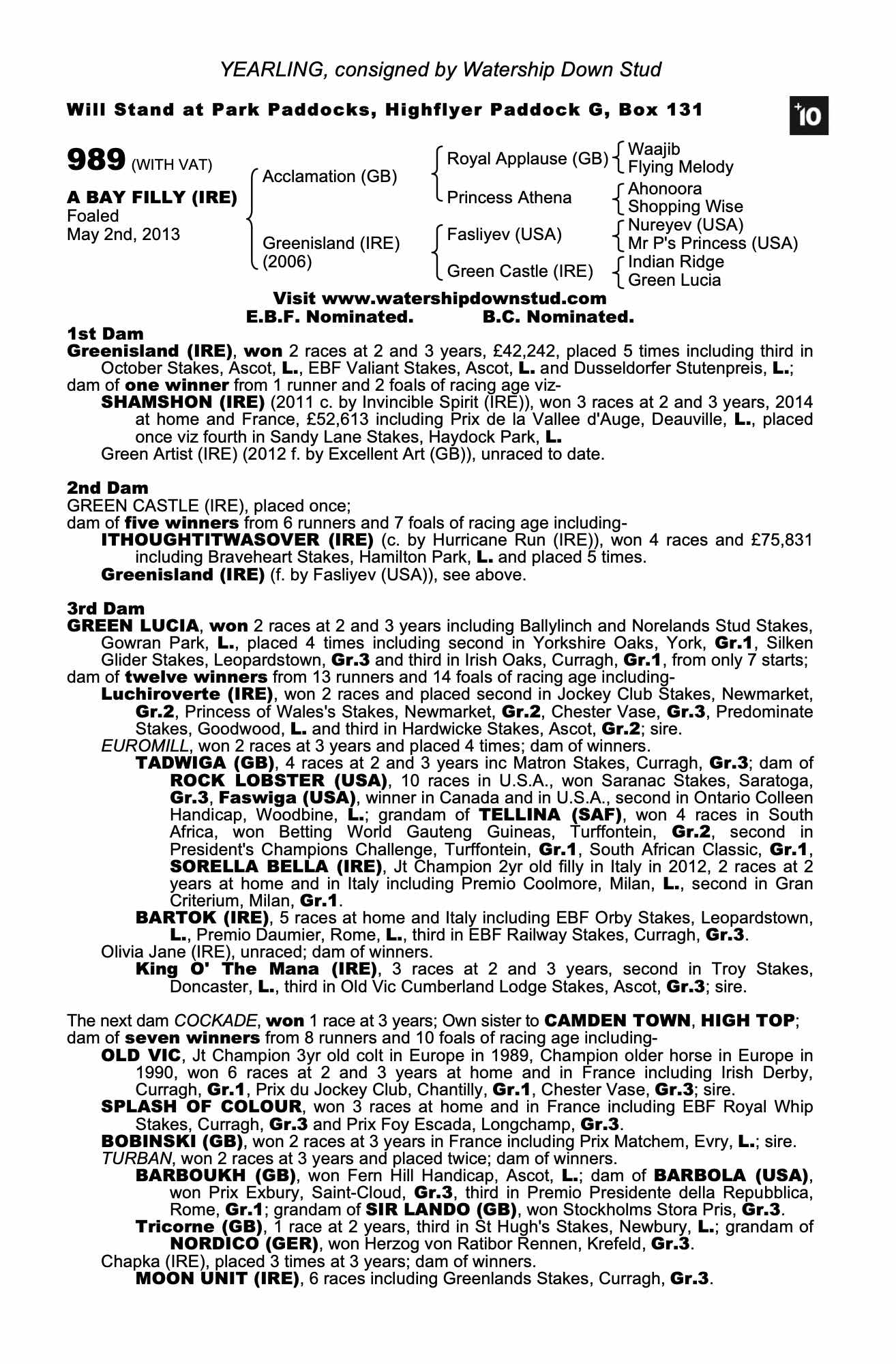 October Yearling Sale Book 1, 2015 lot 223 C. by Invincible Spirit (IRE) 2014, Watership Down Stud=>Shadwell Estate Company 400,000 gns