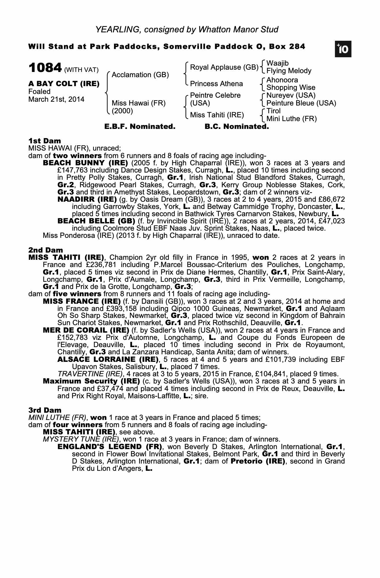 Consignor: Whatton Manor Stud