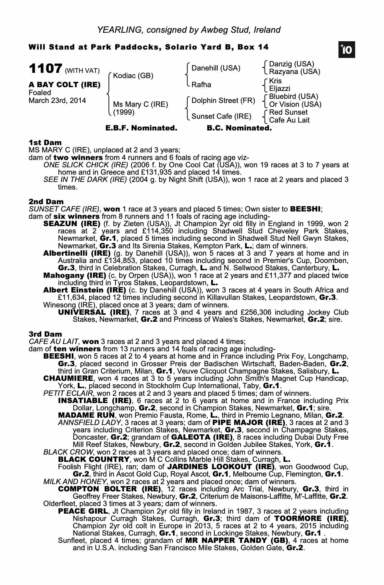 September Yearling Sale Part II 2017 lot 545 F. by Born To Sea (IRE) 2016, Limekiln Stud=>Vendor €2,000