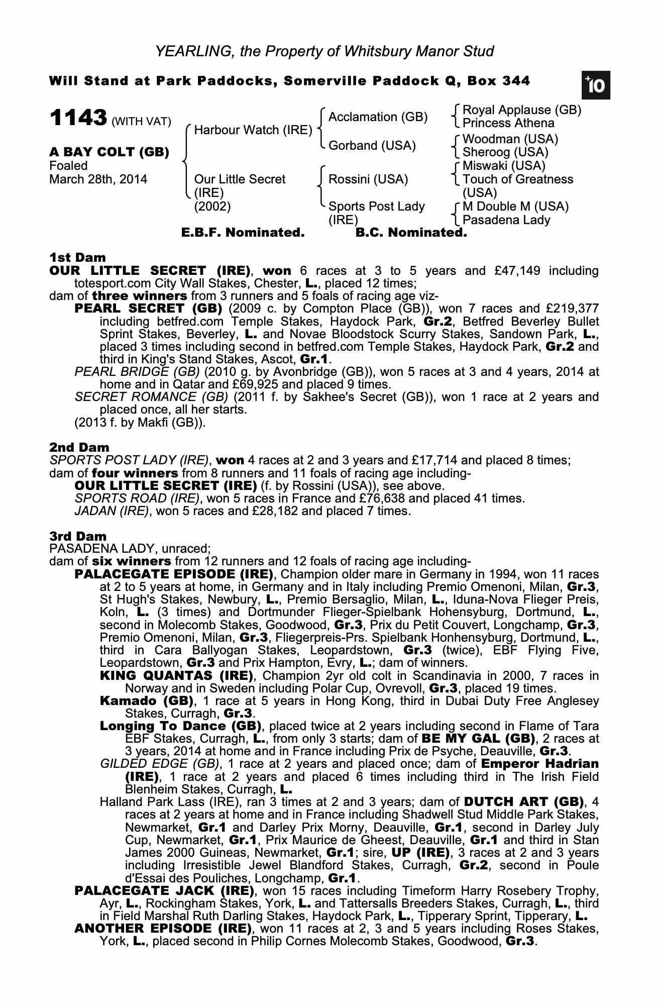 Autumn Horses in Training Sale lot 1042 Pearl Secret (GB) (H. by Compton Place (GB)), Jamie Railton (Agent)=>Salcey Forest Stud 42,000 gns