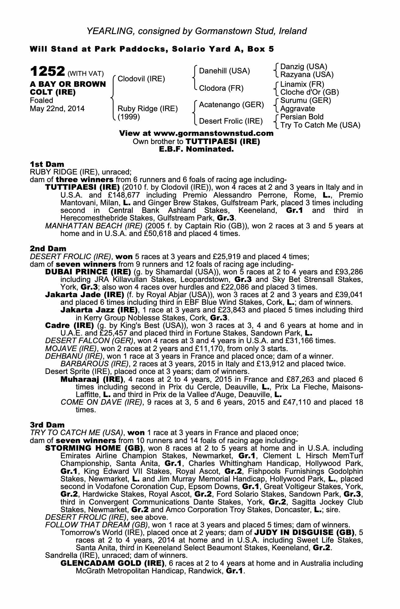 Consignor: Gormanstown Stud, Ireland