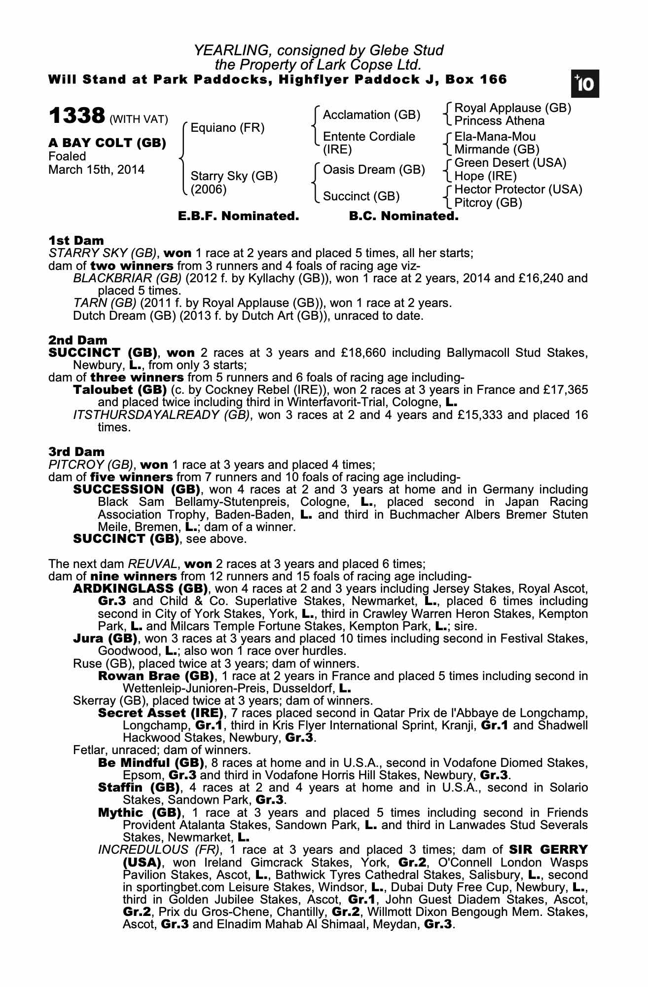 October Yearling Sale, Book 2 2016 lot 1084 F. by Bated Breath (GB) 2015, Glebe Stud=>H Morrison 19,000 gns