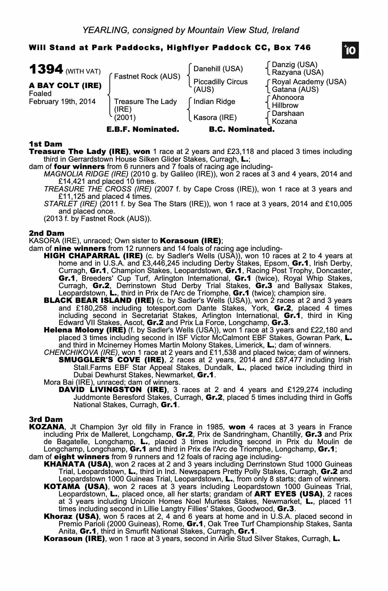 Consignor: Mountain View Stud, Ireland
