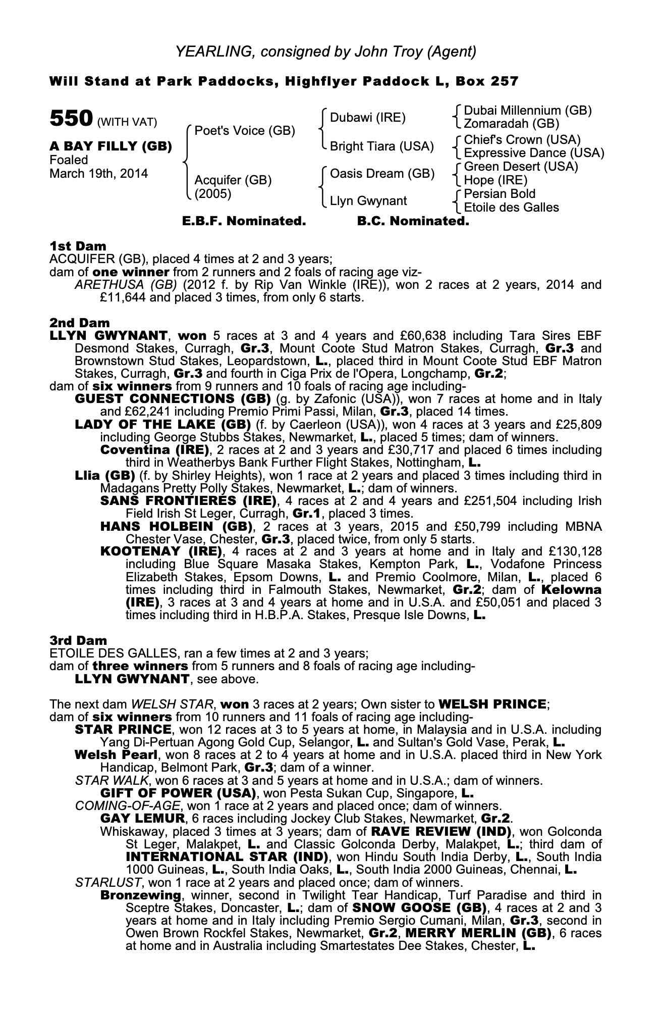 December Yearling Sale 2013 lot 167 F. by Rip Van Winkle (IRE) 2012, John Troy, Agent=>Ed Dunlop Racing/F Barberini 17,500 gns