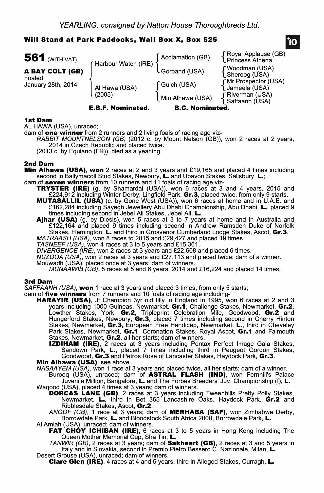October Yearling Sale, Book 3 2018 lot 1784 F. by Mukhadram (GB) 2017, Natton House Thoroughbreds Ltd.=>Mark Walford Racing 3,000 gns