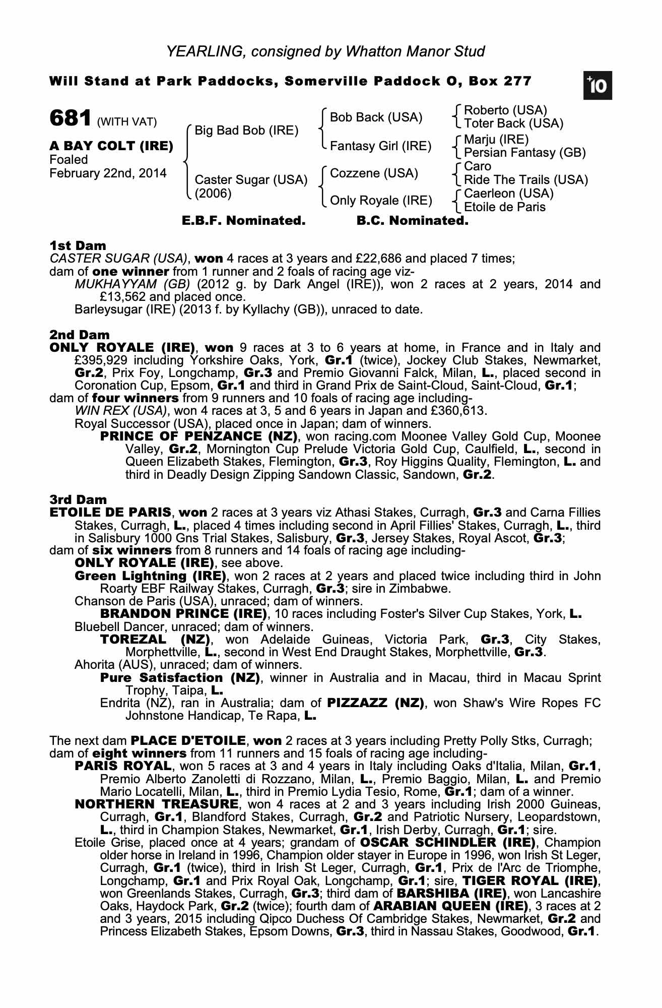 Consignor: Whatton Manor Stud
