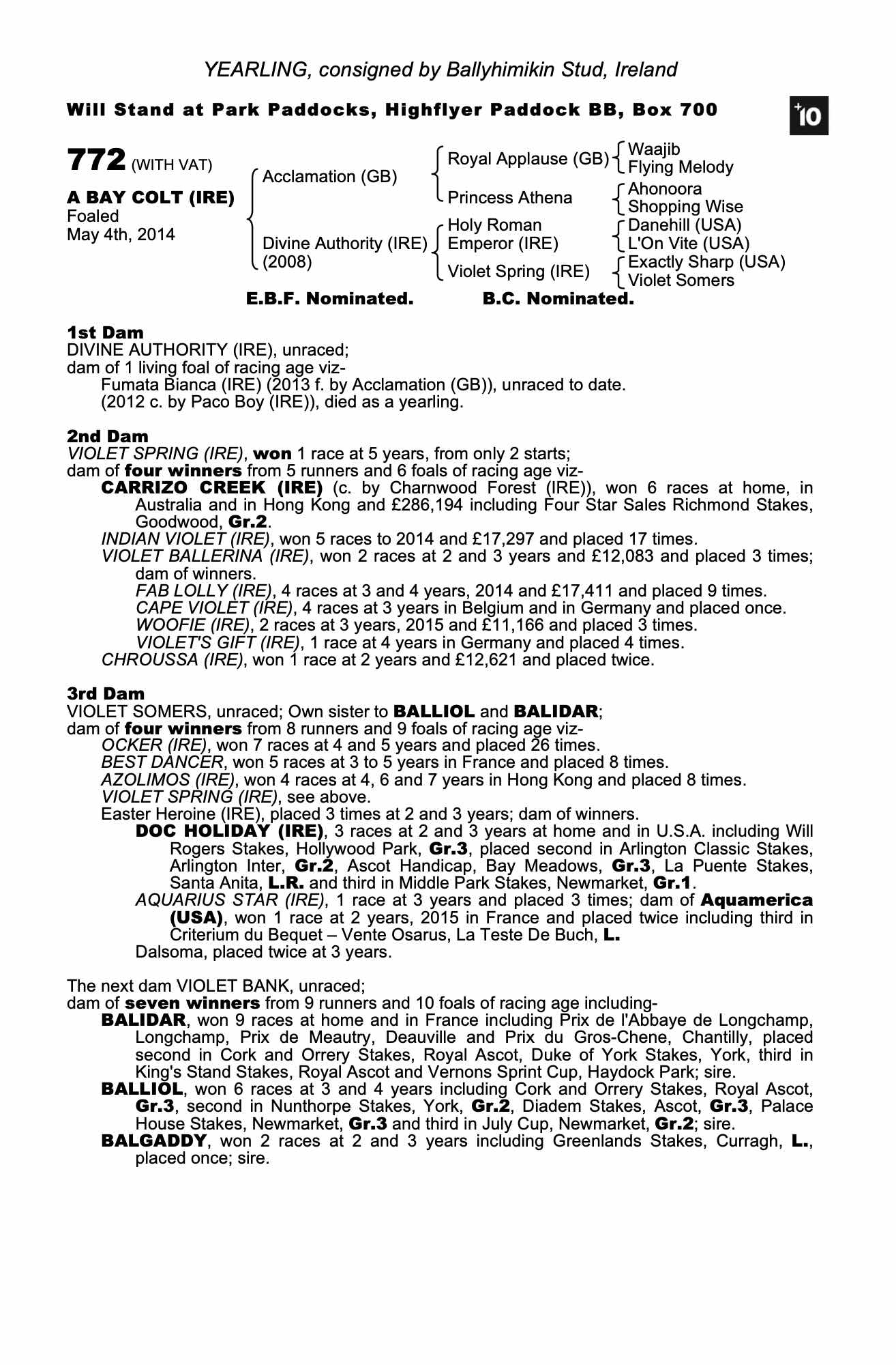 Consignor: Ballyhimikin Stud, Ireland