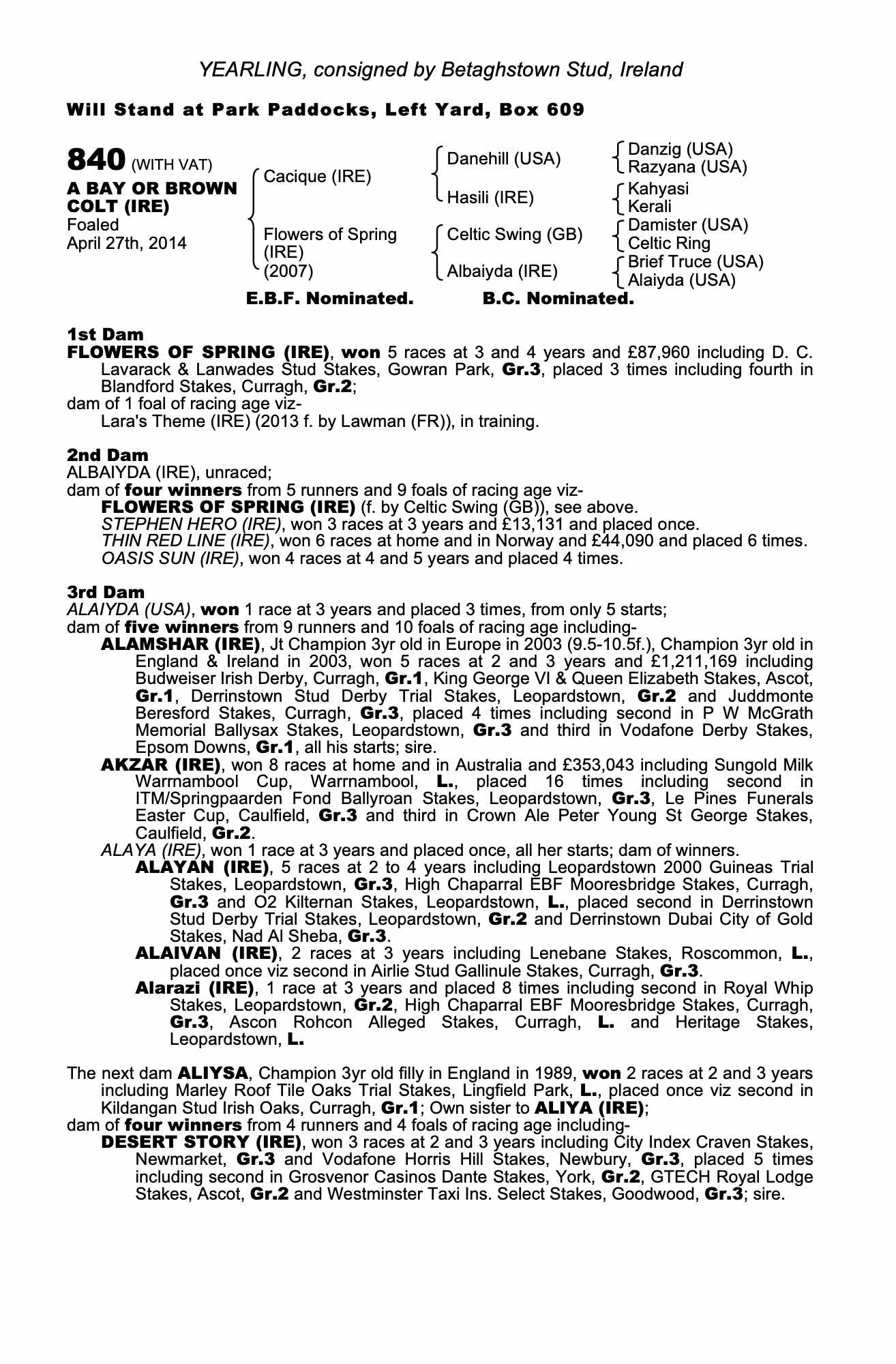 Consignor: Betaghstown Stud, Ireland