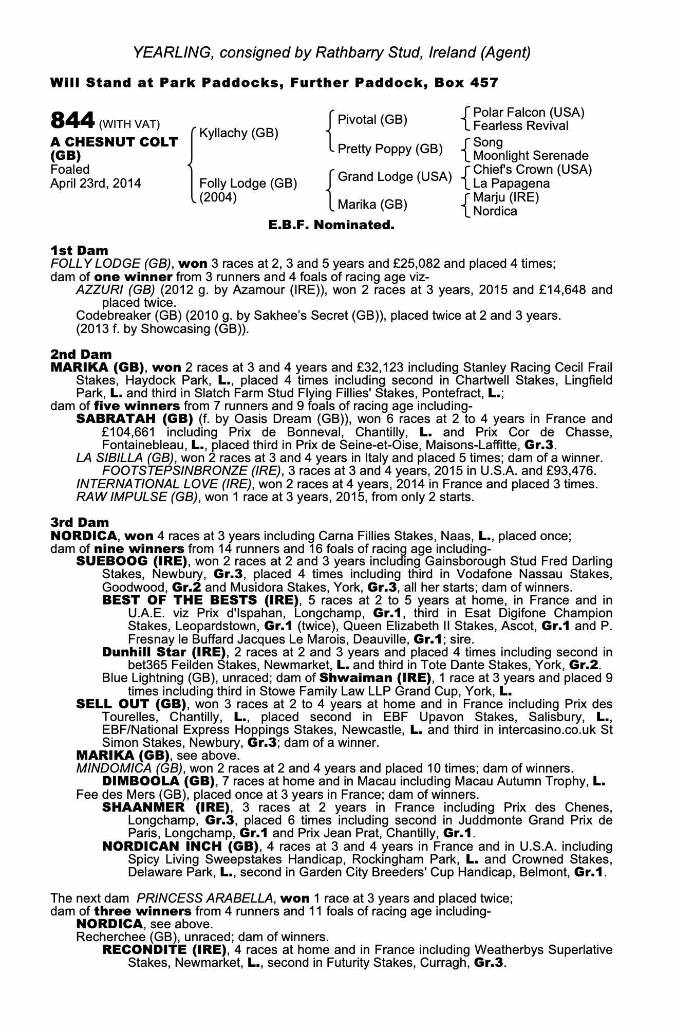 Craven Breeze Up Sale 2015 lot 57 F. by Showcasing (GB) 2013, Tally-Ho Stud, Ireland=>Vendor 15,000 gns