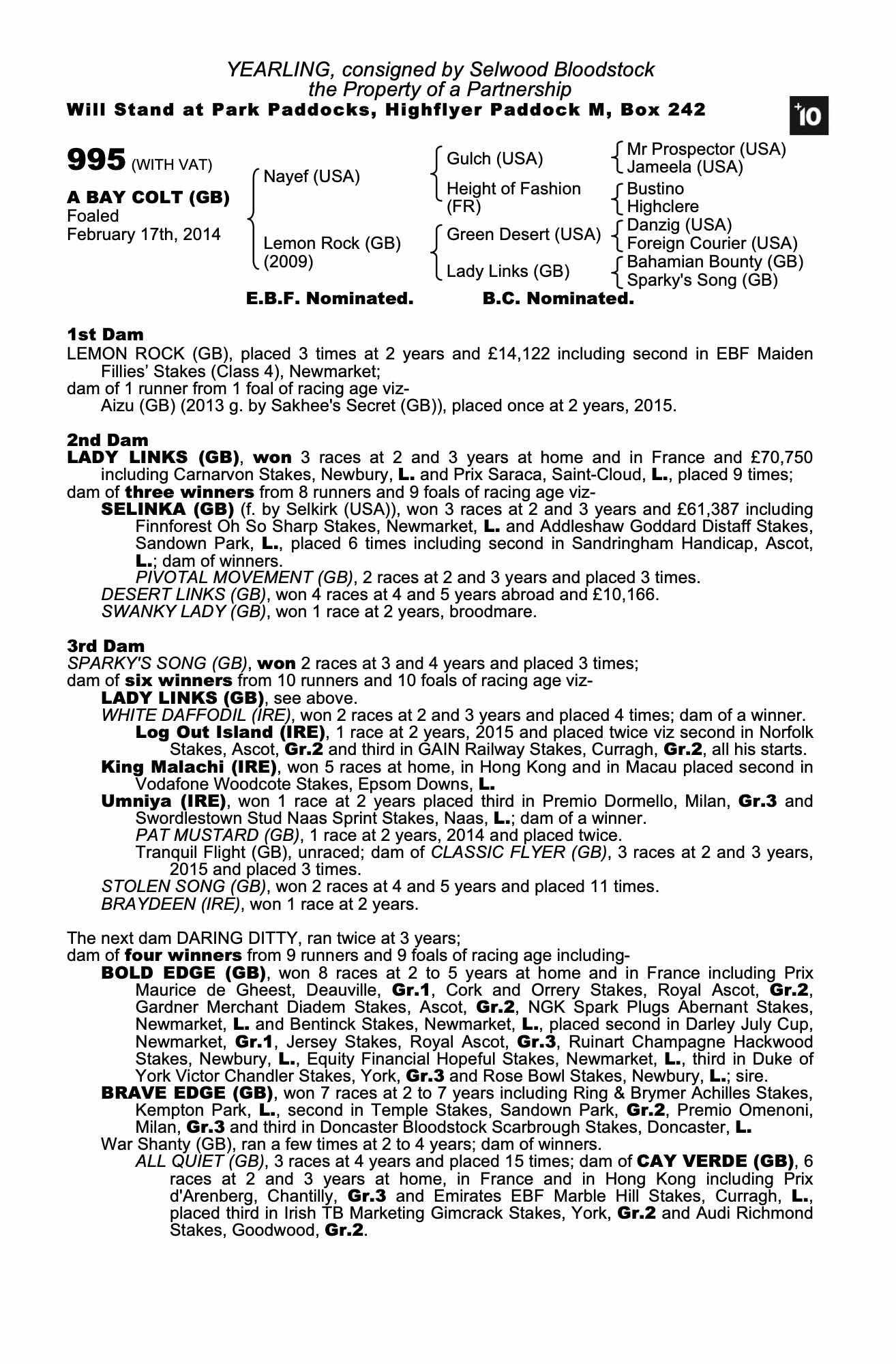 October Yearling Sale, Book 2 2016 lot 798 C. by Champs Elysees (GB) 2015, Monksland Stables, Ireland (Agent)=>Andrew Balding 58,000 gns