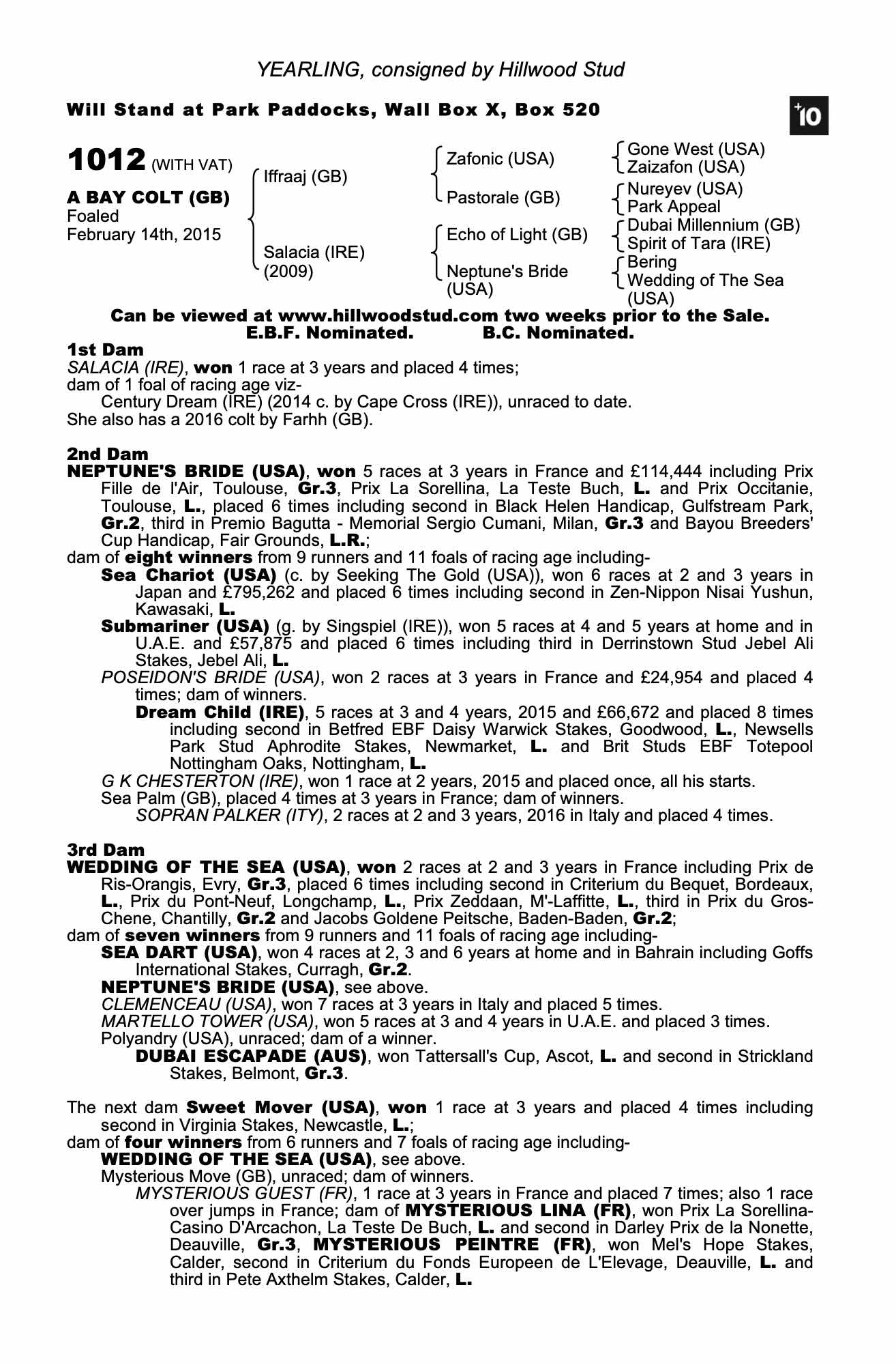 Online Charity Auction of Stallion Nominations lot 10 A Nomination to Century Dream (IRE) (H. by Cape Cross (IRE)), =>Bidding Closed £1,600