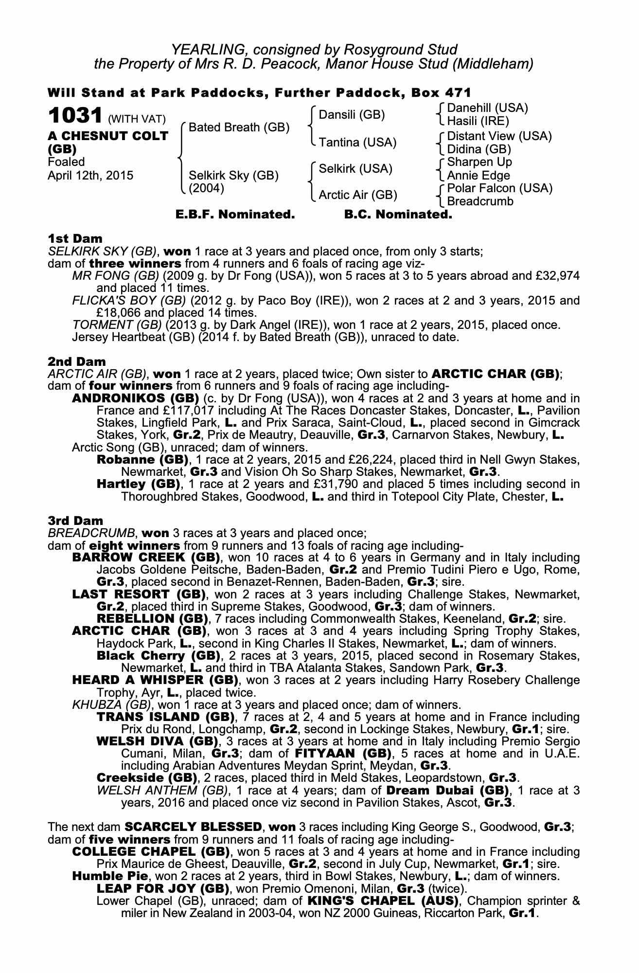 October Yearling Sale, Book 2 2015 lot 1272 F. 2014, Manor House Stud, Middleham=>Mrs A Skiffington 40,000 gns