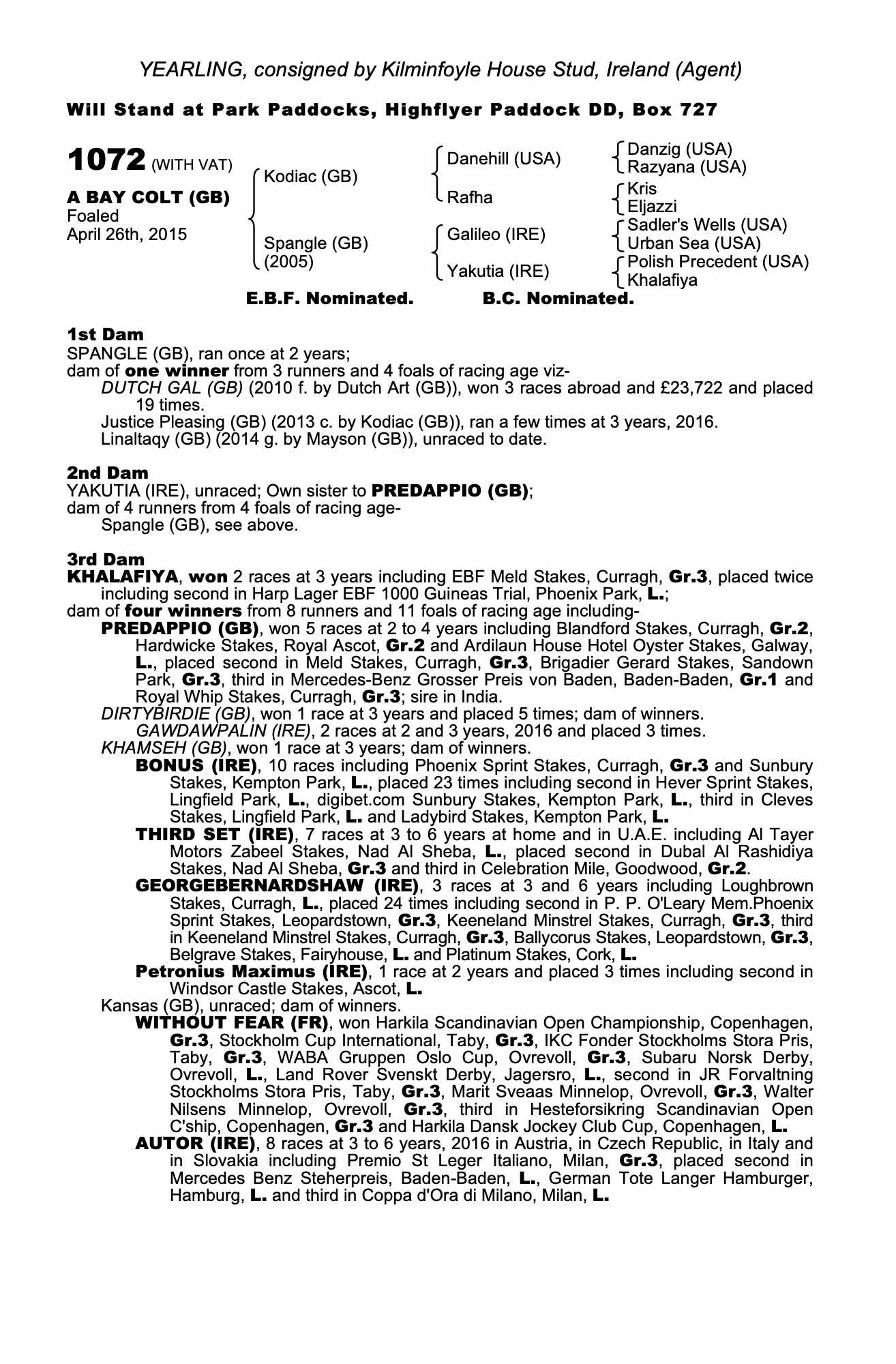 Consignor: Kilminfoyle House Stud, Ireland (Agent)