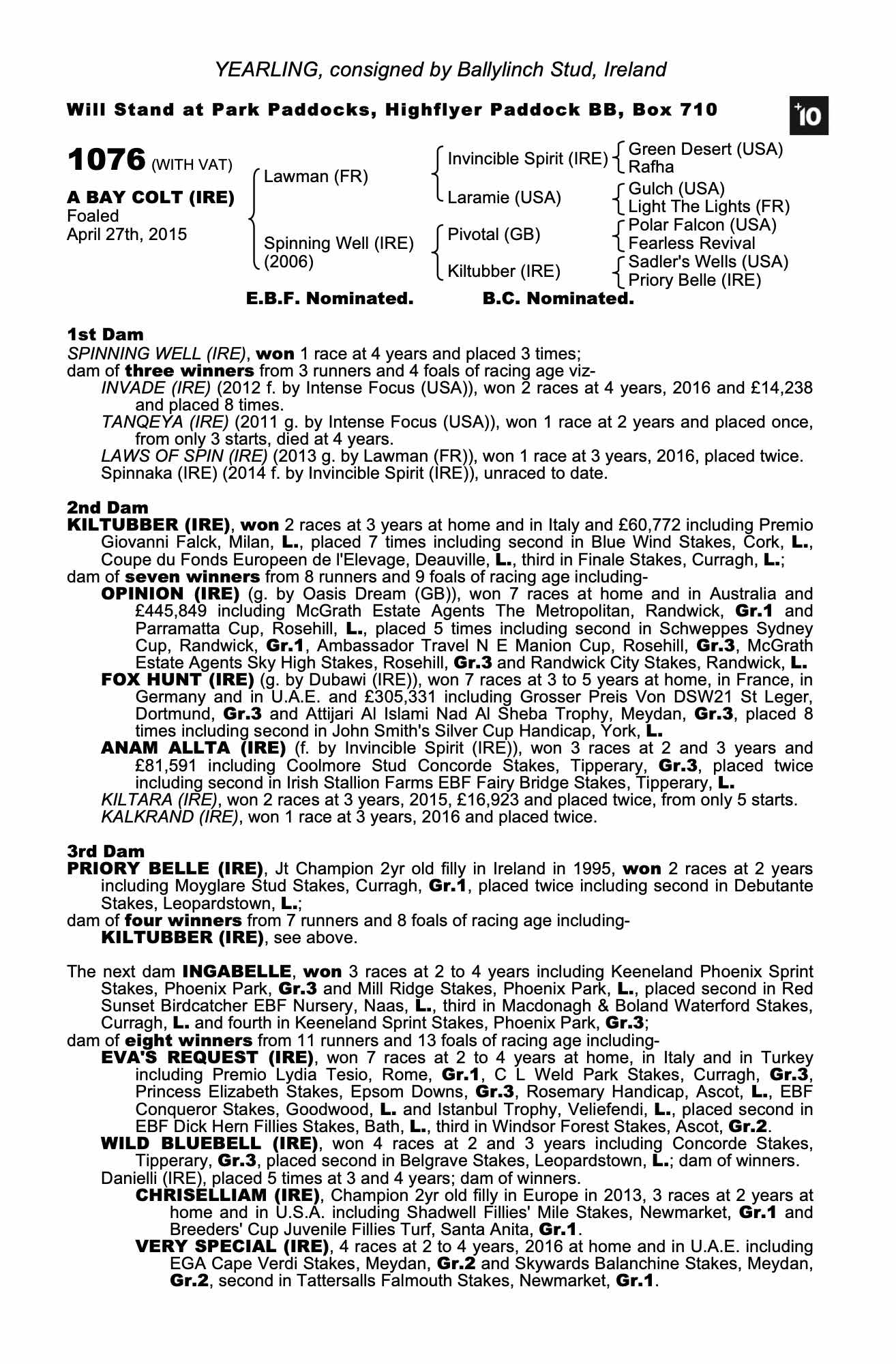 December Mare Sale 2017 lot 2188 Spinnaka (IRE) (F. by Invincible Spirit (IRE)), Bedford House Stables (L. Cumani)=>Tally-Ho Stud 36,000 gns
